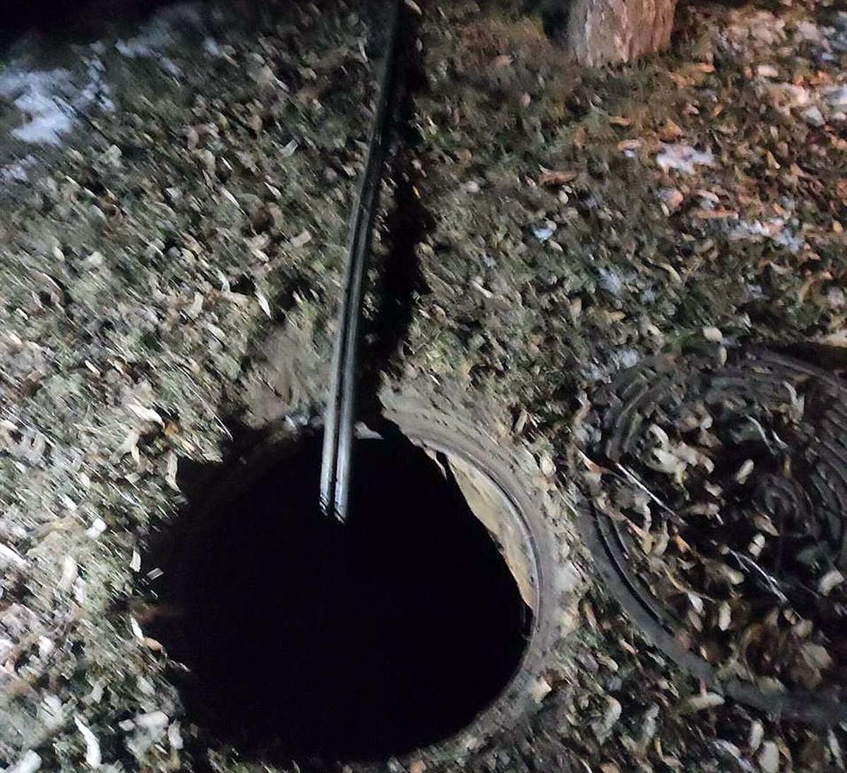 За 3 хвилини правоохоронці вже були на місці події, де виявили трьох чоловіків, які стояли поруч із відкритим каналізаційним люком біля якого лежав багатожильний телефонний кабель та автомобільний буксирний трос.