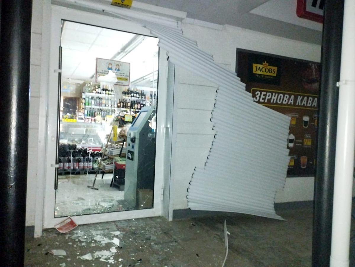 Прибувши за адресою спрацювання було виявлено пошкоджений ролет та розбитий склопакет вхідних дверей магазину.