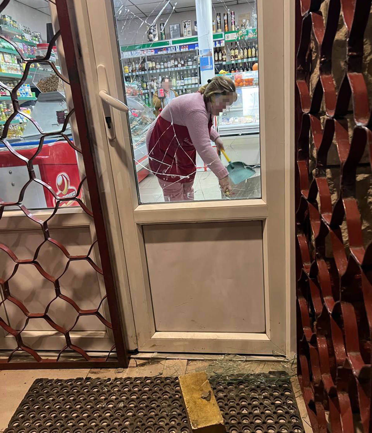 Продавчиня магазину натиснула кнопку "термінового виклику" поліції після того як у двері магазину прилетіла цеглина від незадоволеного покупця. Він перебував у стані алкогольного сп’яніння і жінка відмовилась продавати хлопцю алкоголь, що його дуже обурило.