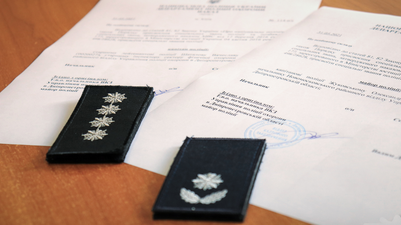 - «майор поліції» начальнику Новомосковського РВ капітану поліції Олександру Жуковському;