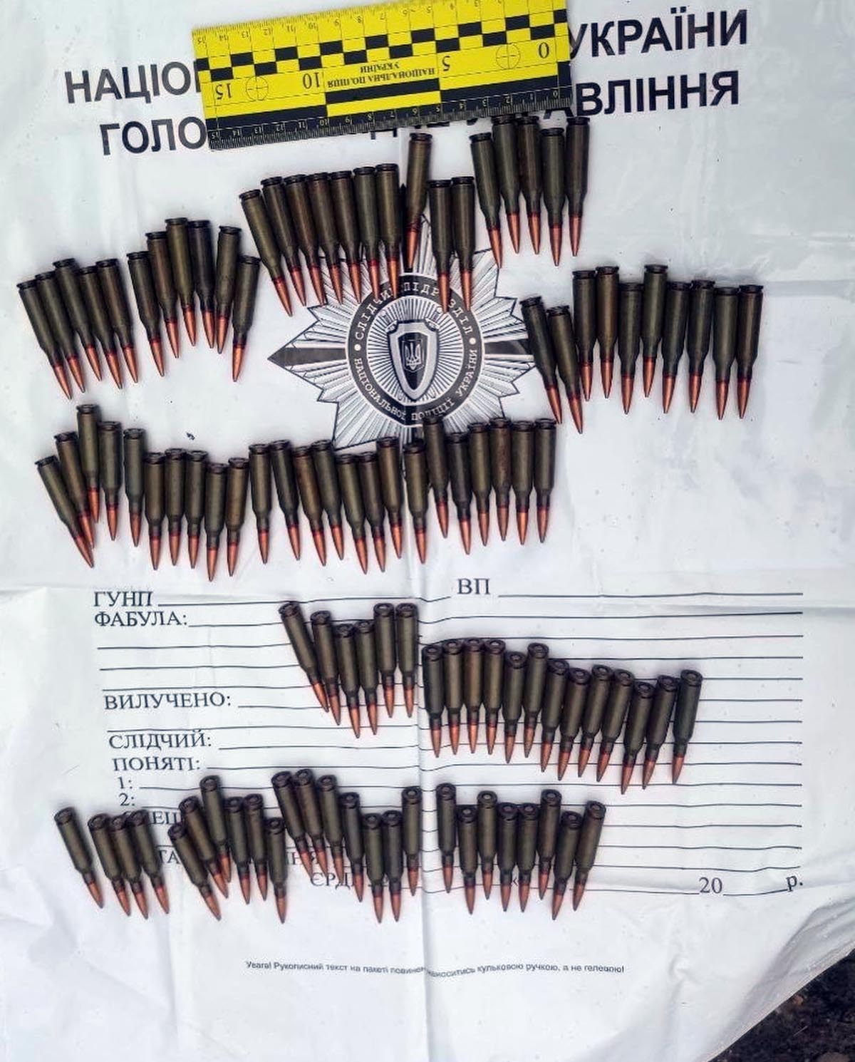 Зупинивши молодика та запитавши, чи має він при собі заборонені речі, затриманий зізнався, що має при собі більше 100 патронів, які, за його словами 38-річного місцевого мешканця, він знайшов.