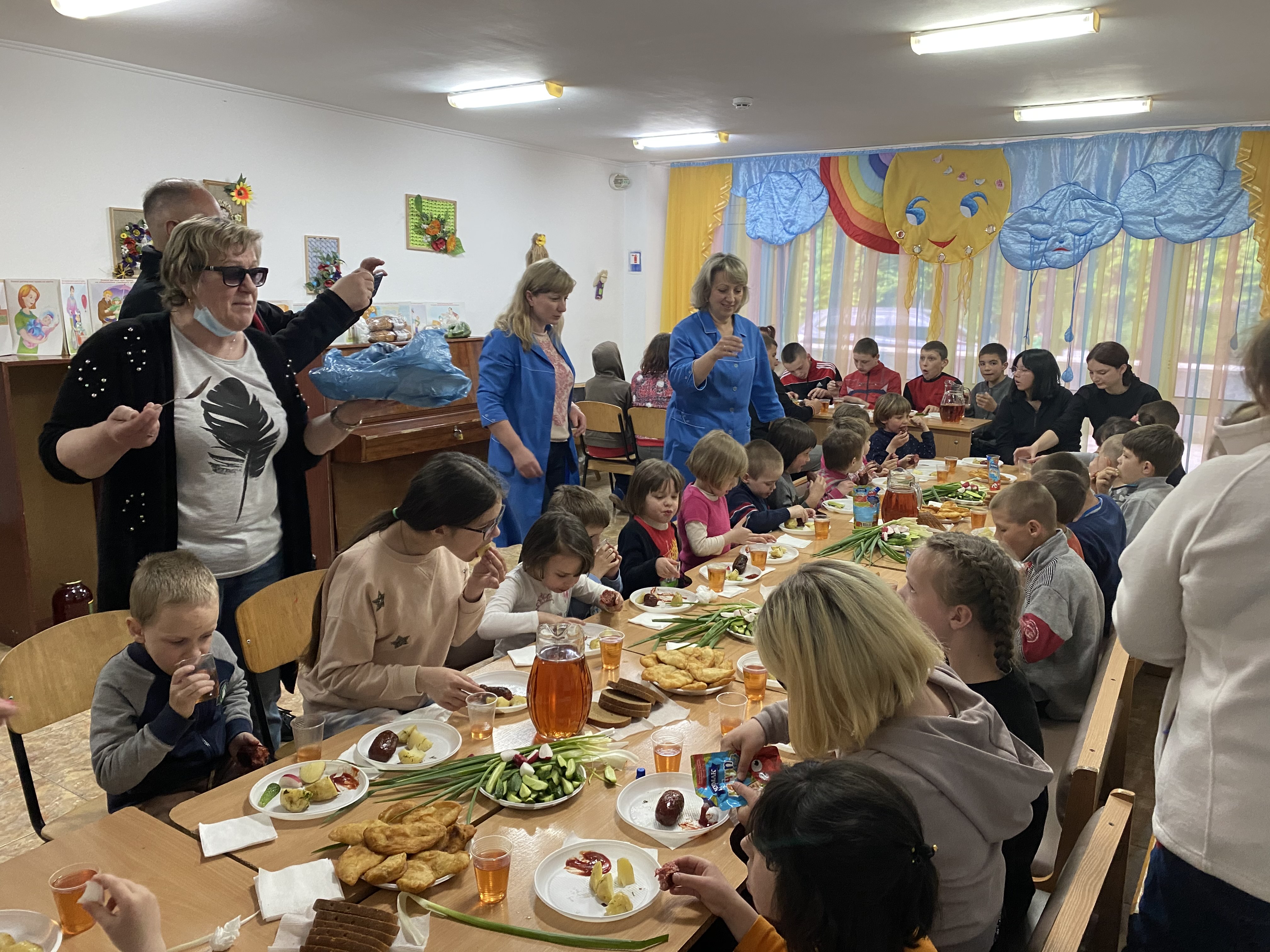 Завершився день за святковою вечерею з щойно смаженими улюбленими дитячими сердельками, картоплею, чебуреками, овочами, фруктами і, звичайно ж, зі смачнющим солоденьким тортом.