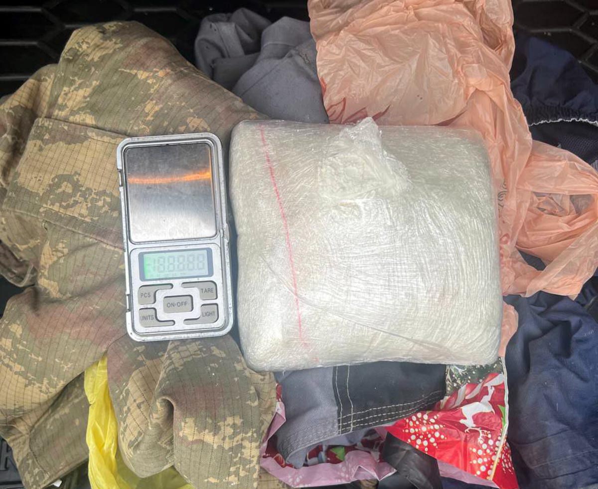 Під час поверхневої перевірки автомобіля та особистих речей на блокпосту в Запоріжжя поліцейські охорони виявили великий поліетиленовий згорток із порошкоподібною речовиною, схожою на наркотичну близько 1 кілограму та електронні ваги.