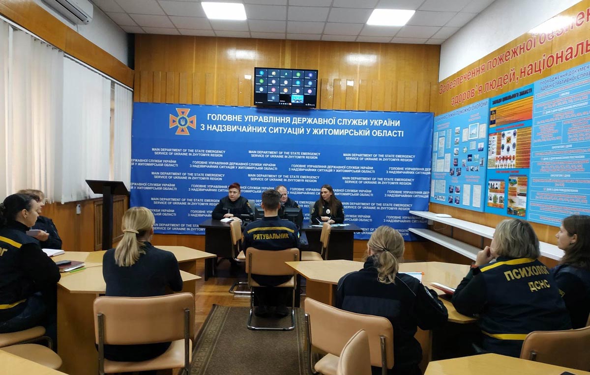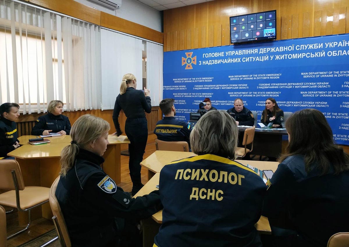 Напередодні щорічної Всеукраїнської акції «16 днів проти насильства» в ГУ ДСНС України у Житомирській області пройшла онлайн-конференція з особовим складом пожежно-рятувальних підрозділів. До заходу долучилися не лише рятувальники, а і представники Національної поліції України. Метою зустрічі стало відпрацювання алгоритму взаємодії різних служб та установ у випадках реагування на виклики про домашнє насильство.
