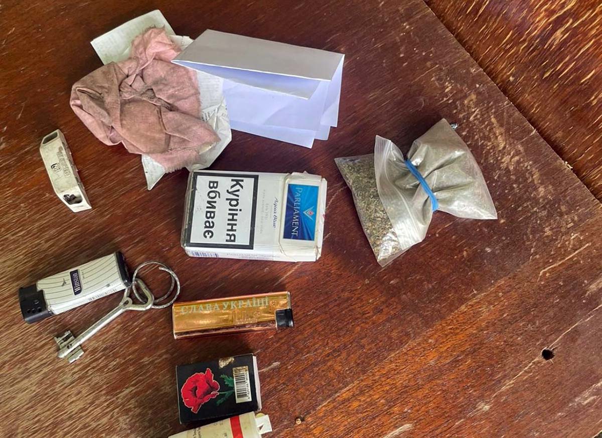 При поверхневій перевірці було виявлено підозрілий пакет з речовиною рослинного походження, схожу на наркотичну.
