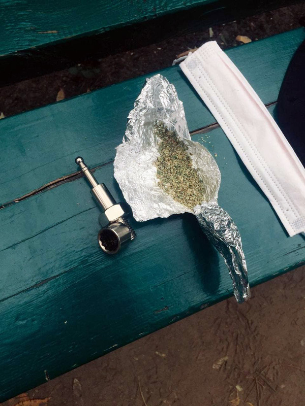 Поліцейські перевірили документи та здійснили поверхневу перевірку підозрюваного, при якій у молодика був виявлений згорток з речовиною рослинного походження зеленого кольору.