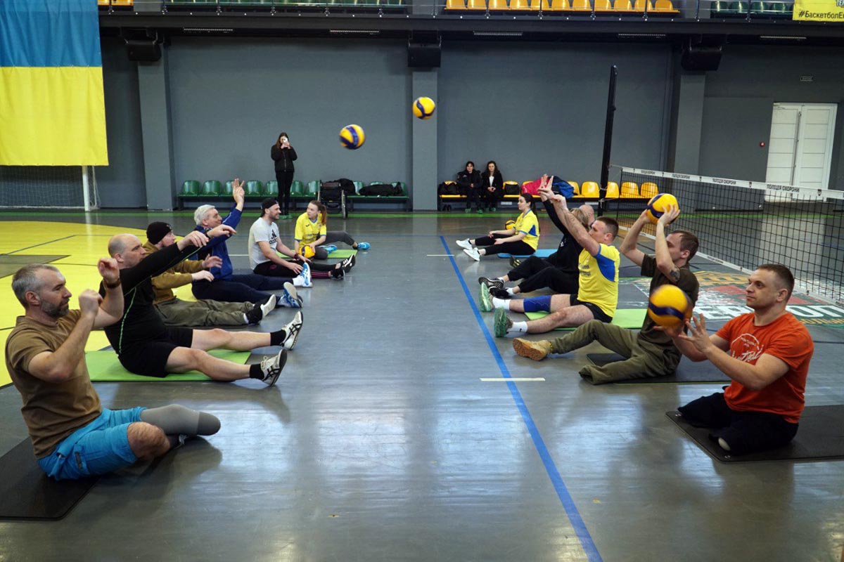 Заняття з волейболу сидячи для захисників, які проходять реабілітацію, організували ГУНП, Управління поліції охорони в Тернопільській області та фізкультурно-спортивне товариство «Динамо».