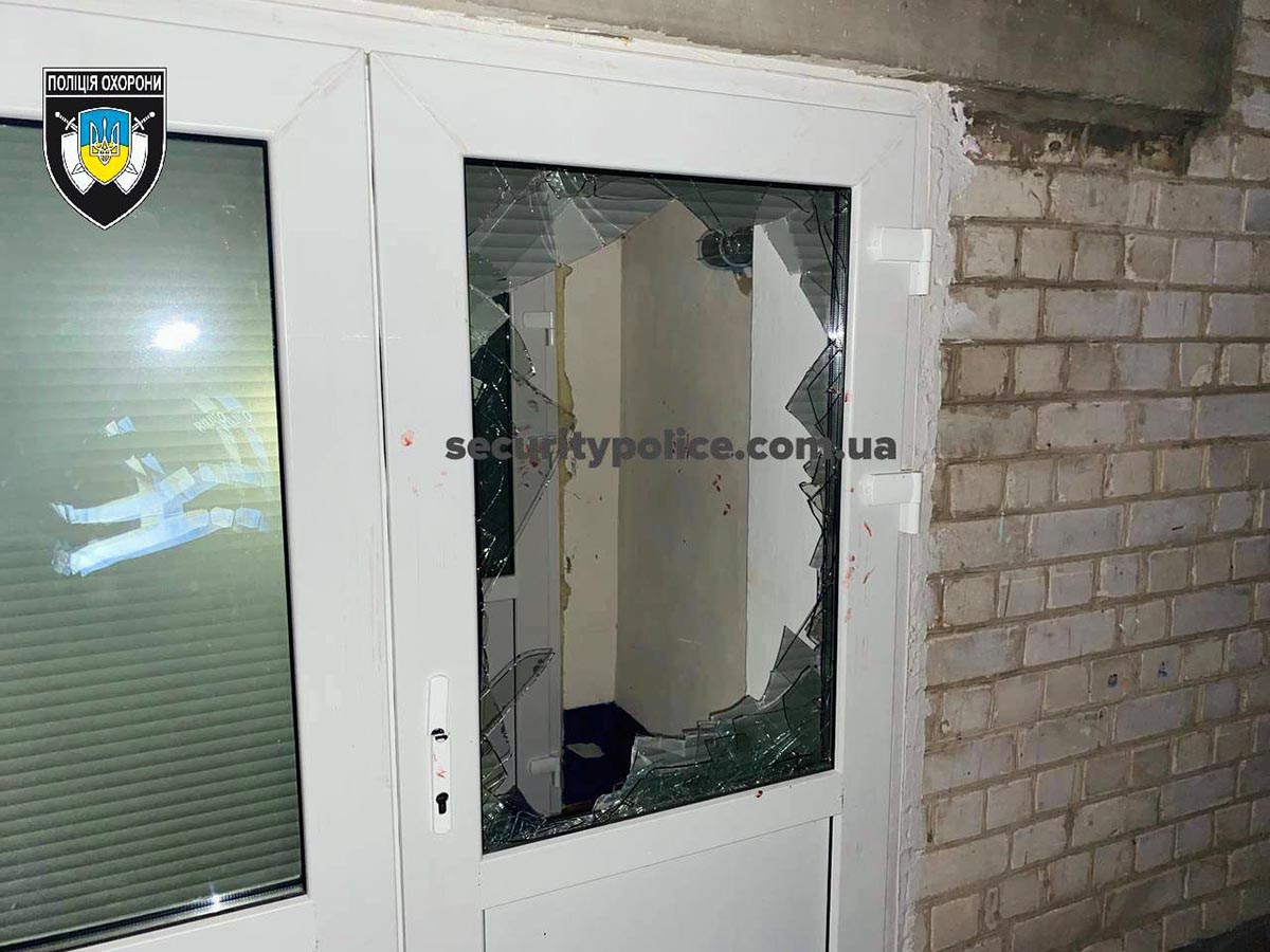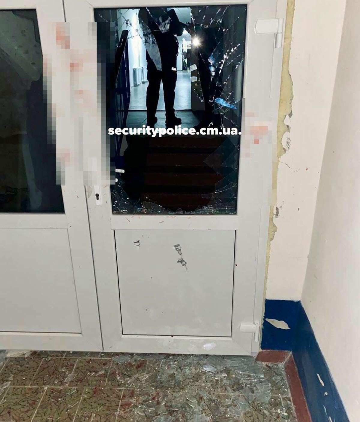 Прибувши до навчального закладу наряд реагування, під час обстеження об'єкта та прилеглої території, виявили розбите скло на металопластикових дверях та сліди крові на них. На місце події було викликано додатковий наряд ГРПП для надійного блокування об'єкта, адже були підозри, що в середині знаходиться стороння особа.