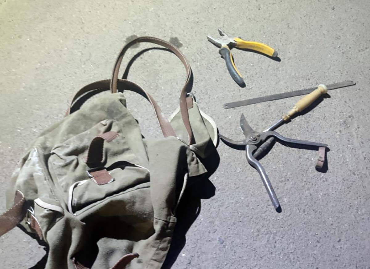 При ньому виявили знаряддя для вчинення правопорушення: ножівку, плоскогубці та металеві ножиці.