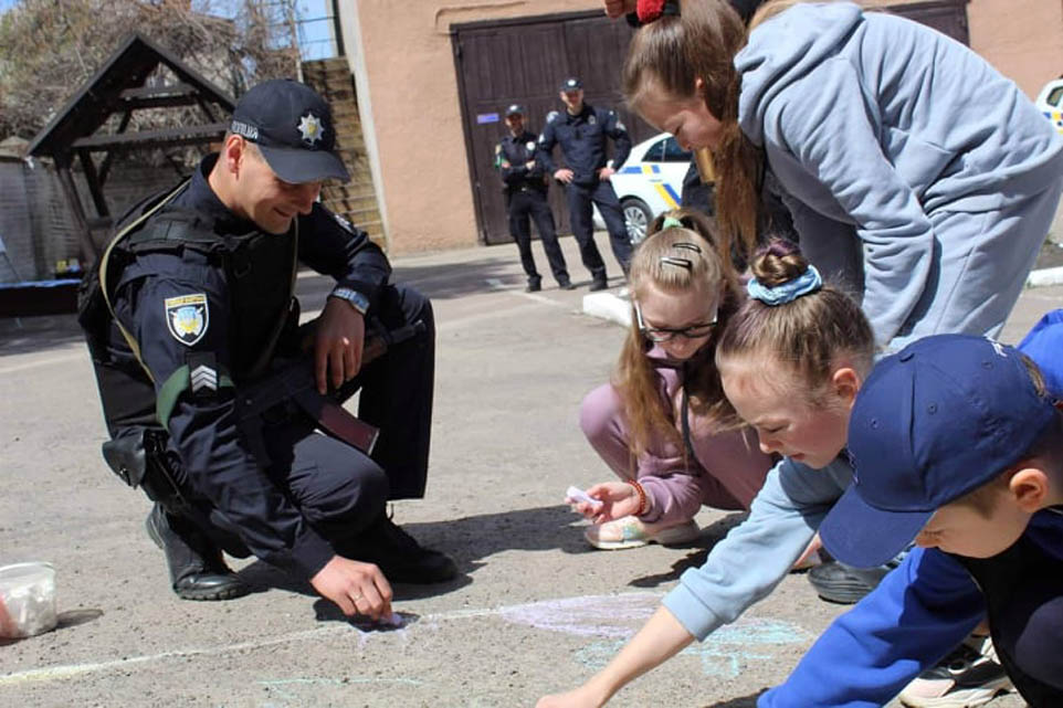 Зустріч розпочалась зі спільного творчого завдання: поліціянти разом з дітлахами намалювали та розфарбували вишиванку, яка стала символом захисту та безпеки українського народу. Квіти, серця та синьо-жовті прапори з’явились на асфальті перед входом до будівлі поліції.