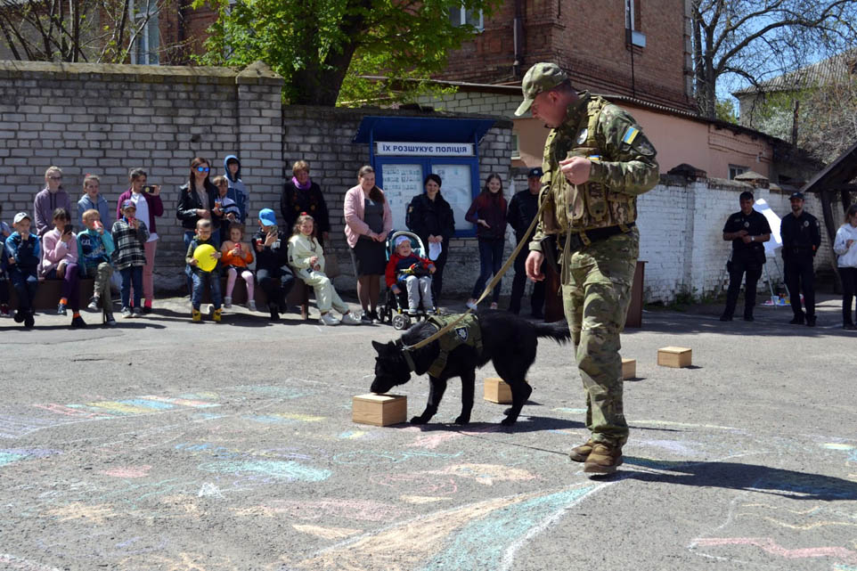 Коли небезпека минула, захід продовжився виступом поліціянтів кінологів зі службовими собаками. Розумні та слухняні чотирилапі помічники правоохоронців викликали непідробне захоплення та щирі аплодисменти у всіх учасників заходу.