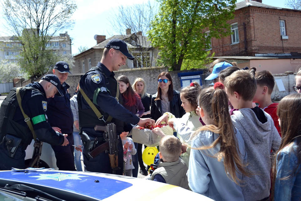 6 травня правоохоронці провели для дітей та їх рідних, які через воєнні дії опинилися у Бердичівському районі Житомирщини, пізнавальний захід. Учасники ознайомились з роботою представників різних підрозділів поліції та рятувальників, поспілкувались з однолітками, отримали необхідні їм речі та харчові продукти. Всі разом намалювали вишиванку, яка символізує захист та безпеку.