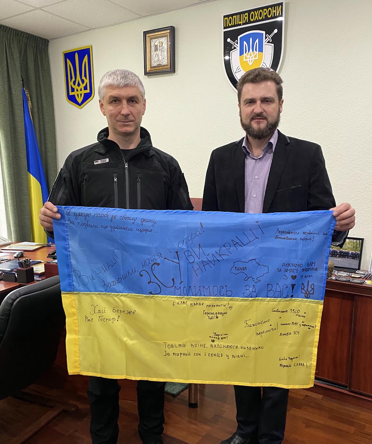 Керівництво та колектив Управління поліції охорони з фізичної безпеки в м. Києві висловлює священнику Православної Церкви України та директору Благодійного фонду «Серце Самарянина» Роману Мануляку слова безмежної вдячності за Ваше сприяння, підтримку та неоціненну допомогу.