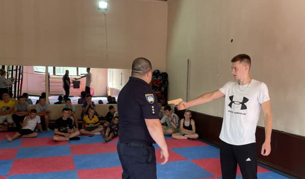 Також на хлопців чекало заняття з рукопашного бою. Під керівництвом досвідченого наставника підлітки відпрацювали прийоми самозахисту при раптовому нападі правопорушника у транспорті, громадському місці, а також при великому скупченні людей.