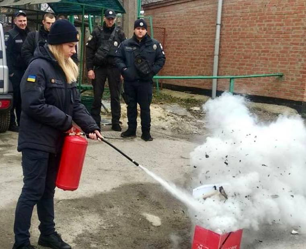 Фахівці ДСНС нагадали поліцейським охорони алгоритм дій на випадок отримання сигналу «Повітряна тривога» та зосередили увагу на порядок дій у разі виникнення пожежі й на застосування первинних засобів пожежогасіння.
