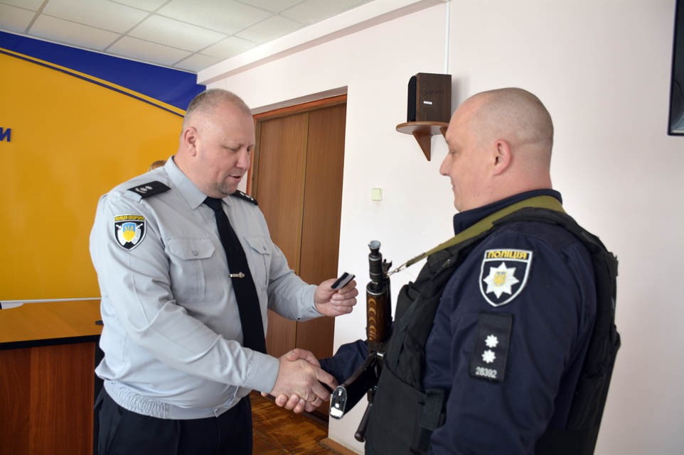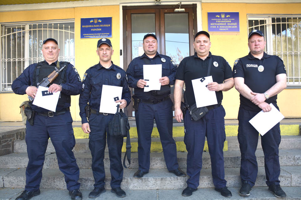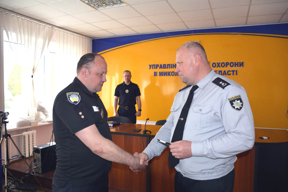 Начальник управління поліції охорони в Миколаївській області підполковник поліції Дмитро Бриндзюк вручив погони працівникам управління та привітав із присвоєнням чергових спеціальних звань «капітан поліції», «старший лейтенант поліції», «лейтенант поліції». Він наголосив: під час військових дій отримати спеціальне звання не тільки велика честь, але й величезна відповідальність. Сьогодні девіз «Служити та захищати» набуває ще більш важливого значення, бо разом з військовими працівники поліції тримають мирне небо над Україною. Життя висуває ще вищі вимоги до поліцейських, ставить перед ними нові службові завдання.