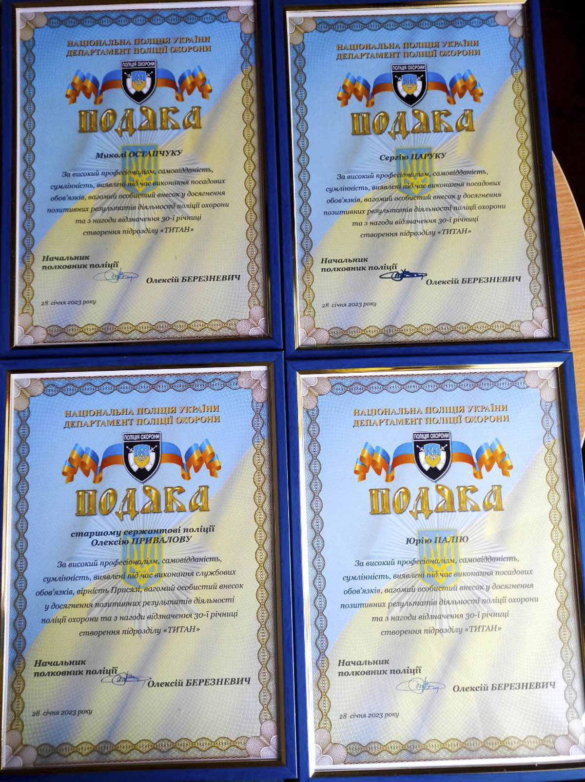 Подяки були вручені трьом працівникам та одному ветерану служби охорони, який перебував в підрозділі «Титан» з моменту його створення з 1992 року.