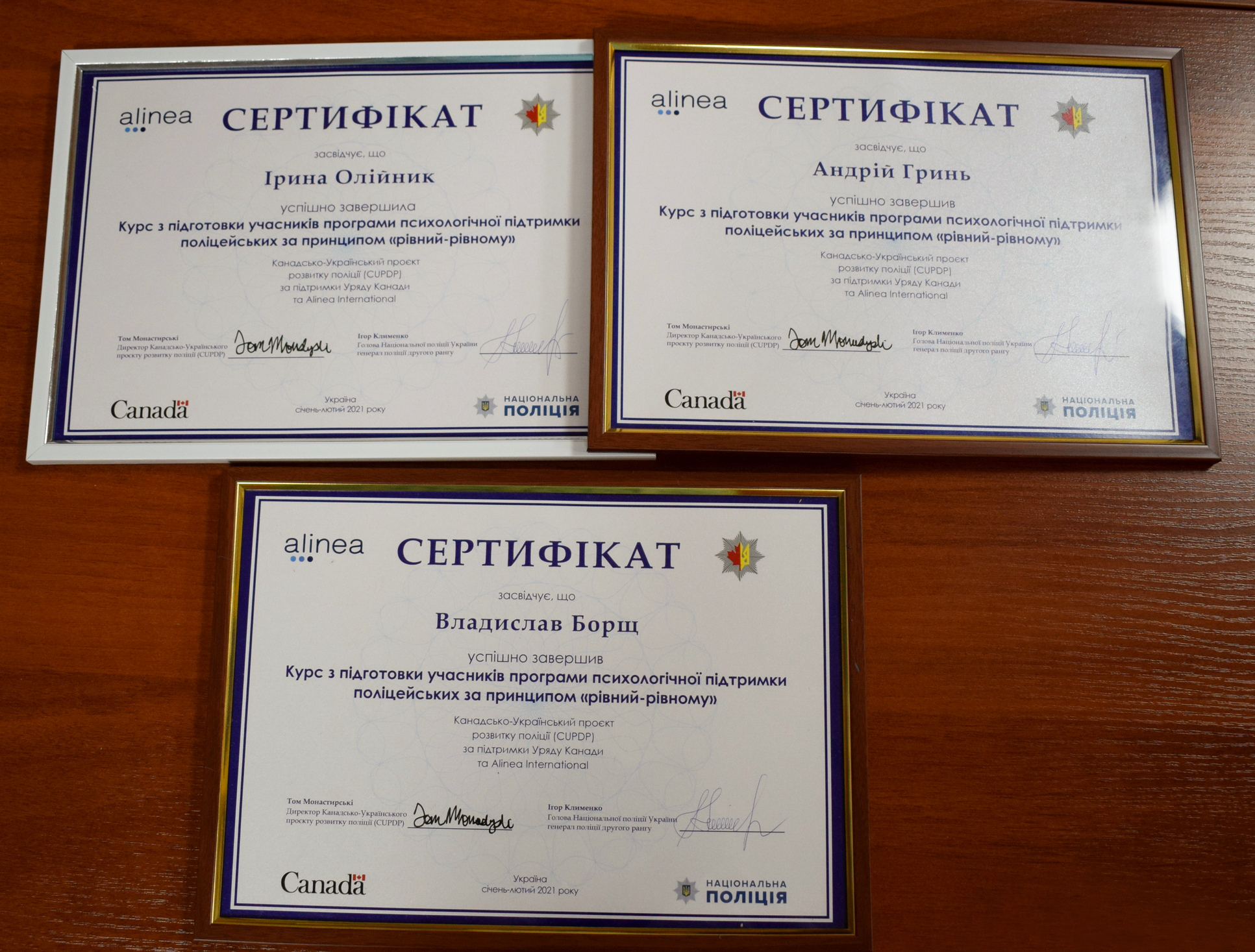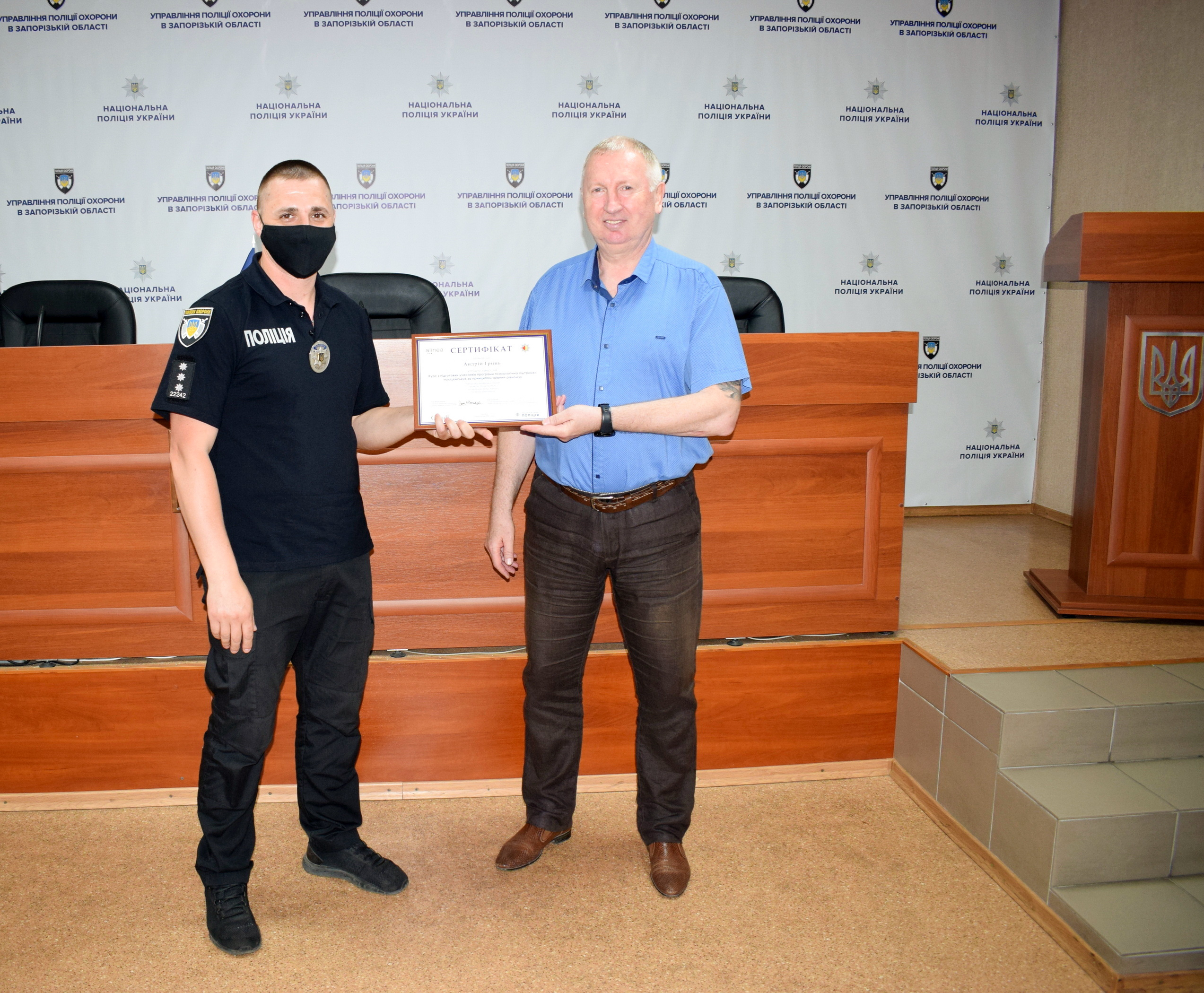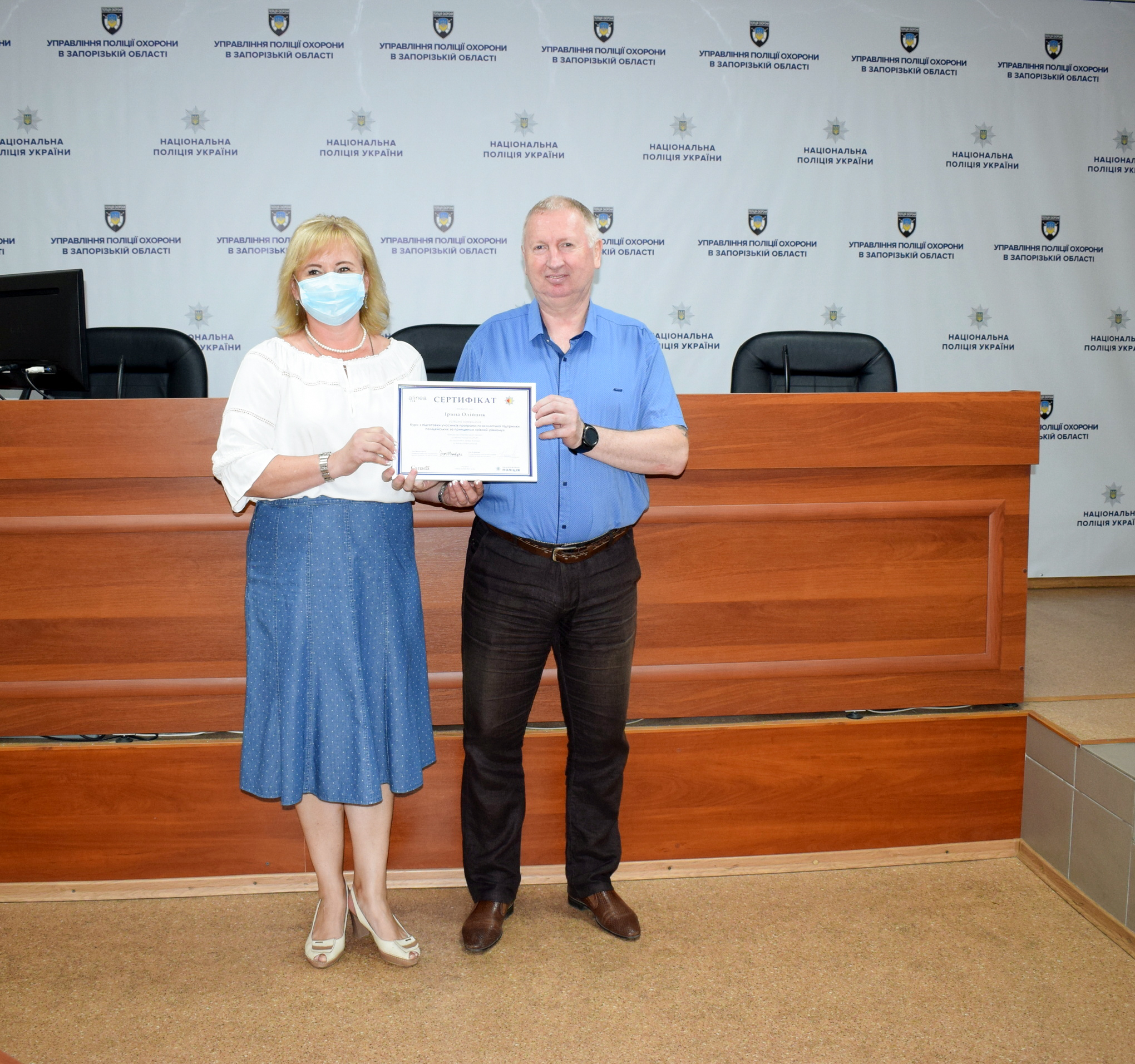 Після успішного проходження навчання учасники отримали відповідні сертифікати консультантів. Так, в Управлінні поліції охорони в Запорізькій області сертифікованими консультантами стали: командир взводу роти охорони об’єктів та публічної безпеки Олександрівського МВ, старший лейтенант поліції Владислав Борщ; командир взводу реагування Вознесенівського МВ, старший лейтенант поліції Андрій Гринь та провідний психолог відділу кадрового забезпечення Управління Ірина Олійник.