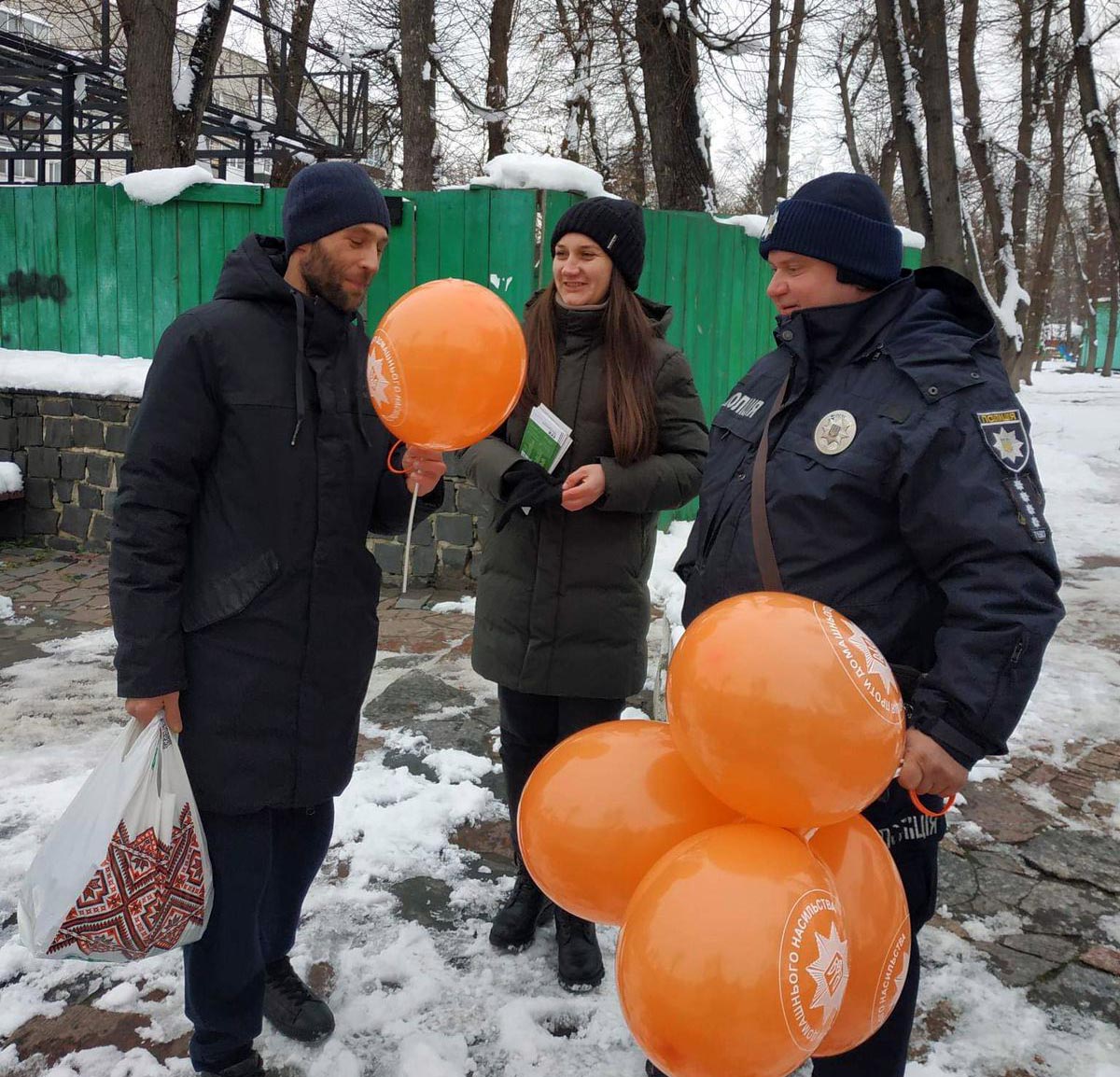 Вручили також перехожим буклети з інформацією про те, де шукати допомоги та до кого звернутися за порадою в скрутних ситуаціях, що виникли через домашнє насильство.