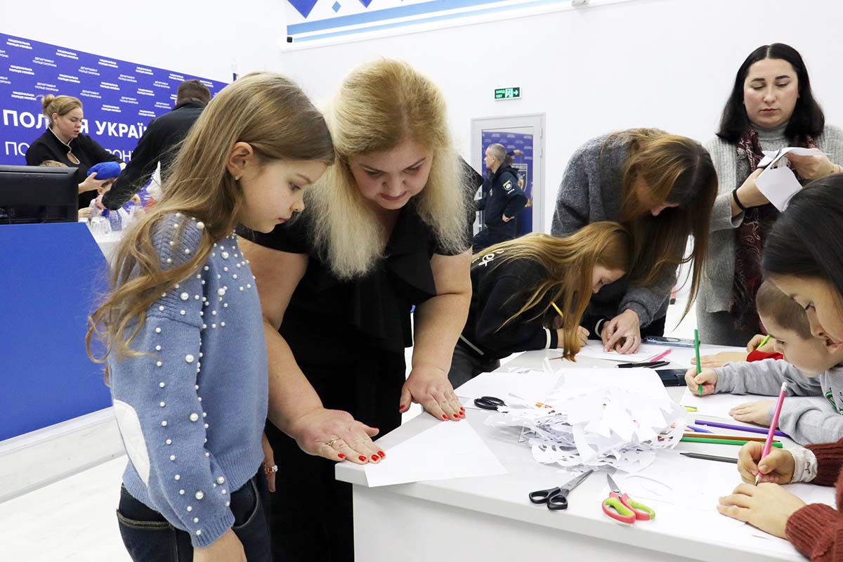 Для маленьких гостей організували низку захоплюючих конкурсів, у яких дітлахи могли продемонструвати свої здібності. Окрім цього, проводилися майстер-класи: діти вирізали сніжинки, створювали святкові малюнки та робили традиційні українські обереги у вигляді ляльок-мотанок. Ці обереги згодом передадуть нашим поліцейським, які захищають країну у стрілецьких батальйонах.