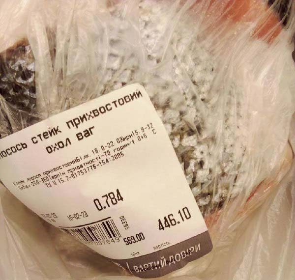 “Співробітники поліції охорони негайно вирушили на допомогу. На місці подій знаходилась жінка, яка намагалась залишити магазин, разом з неоплаченим товаром на суму 850 грн. А саме, панянка виклала з пакета стейк лосося, вагою 800 г. та 300 г., та майже 1 кг 200 г. стейка яловичини. На місце подій була викликана слідчо-оперативна група” , - розповів начальник Бучанського РВ УПО в Київській області Дмитро Письменюк.