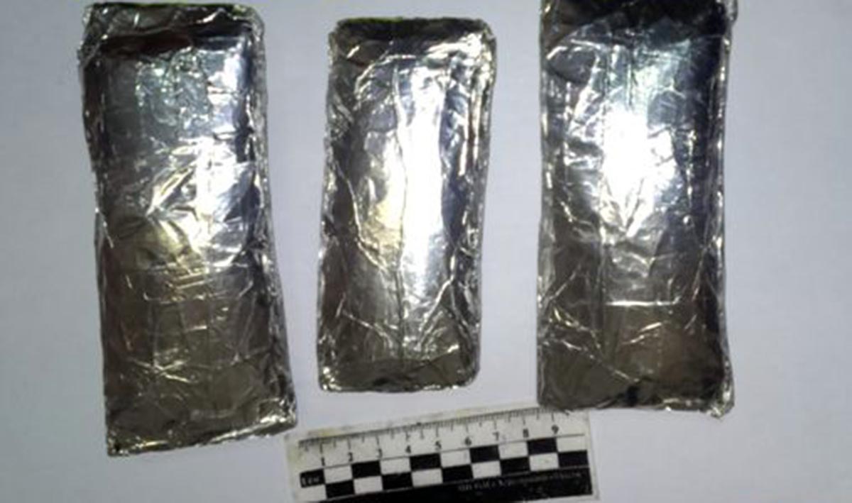 Перевіривши документи та здійснивши поверхневий огляд, поліцейські охорони виявили у громадянина три згортки з фольги, в яких зберігалася порошкоподібна речовина білого кольору.