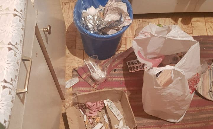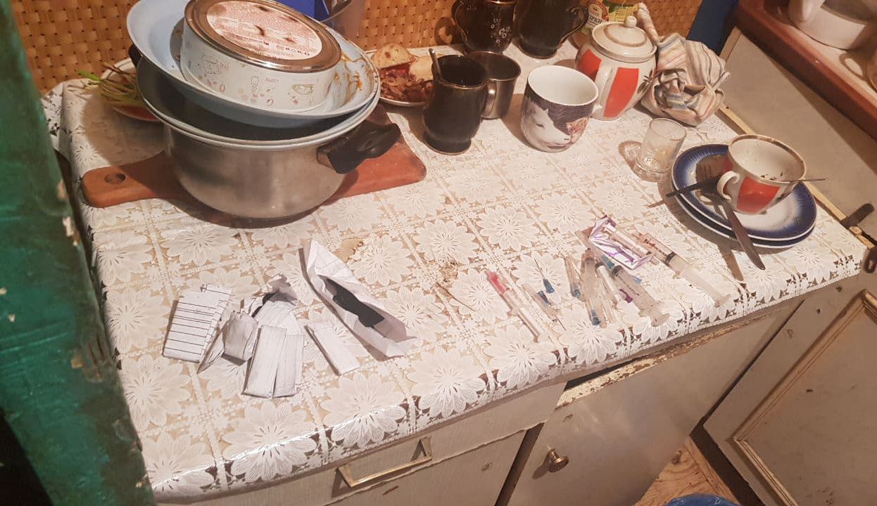 На службовий планшет наряду поліції охорони о 21-16 надійшло повідомлення про те, що з однієї із квартир Холодногірського району лунають голосні прохання про допомогу. За вказаною адресою двері квартири поліцейським охорони відчинив чоловік, який представився власником житла. В приміщенні знаходився ще один чоловік і дві жінки. Поруч із ними знаходились шприци з залишками речовини бурого кольору та згортки з речовиною хімічного походження. Санітарно-гігієнічні умови в квартирі та речі, що знаходились в ній, свідчили про те, що у приміщенні вживають наркотичні засоби не вперше.