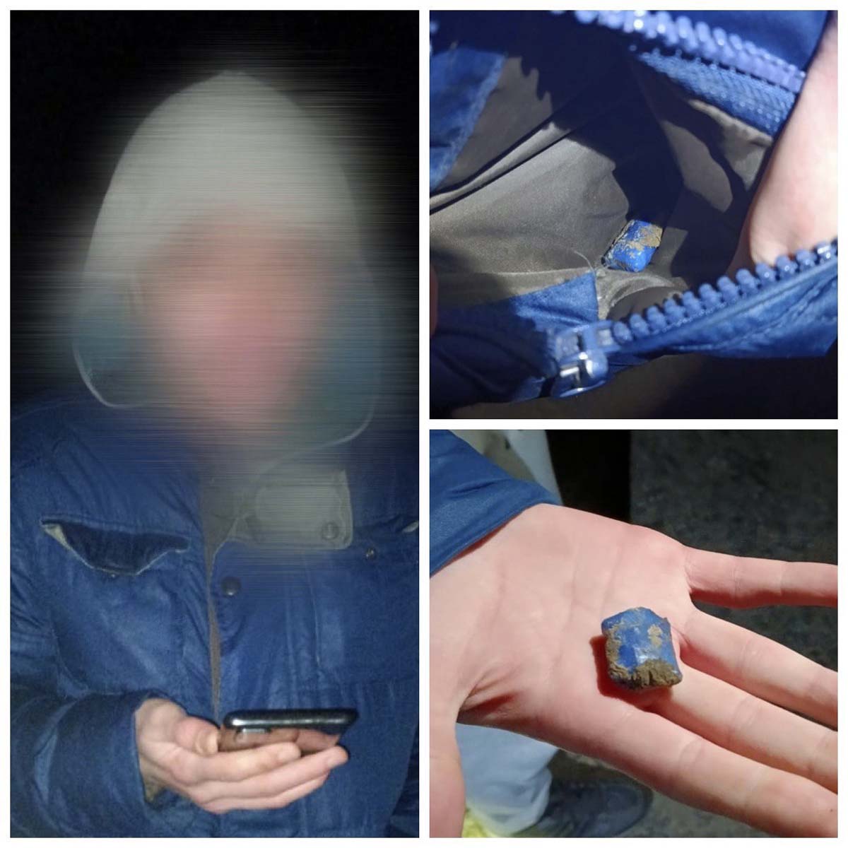 Правоохоронці вирішили з’ясувати причину збентеженості невідомого та відповідно до вимог Закону України «Про Національну поліцію» здійснити превентивні заходи у вигляді перевірки документів та поверхневого огляду. У результаті огляду у чоловіка було виявлено згорток з речовиною сіро-зеленого кольору, рослинного походження, схожу на наркотичну.