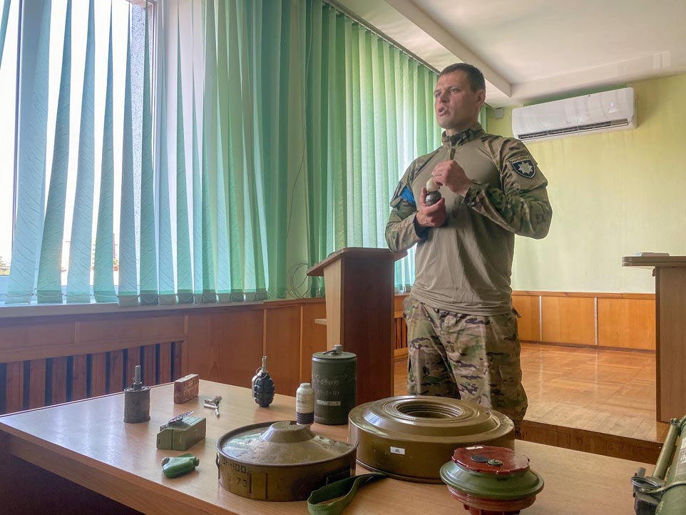 Представник вибухотехнічної служби розповів про види небезпечних предметів, на які можна натрапити на вулицях. Продемонстрував муляжі бойових гранат, радіокерованих саморобних пристроїв та датчиків. Також розповів про те, як убезпечити своє життя при виявленні небезпечної знахідки.