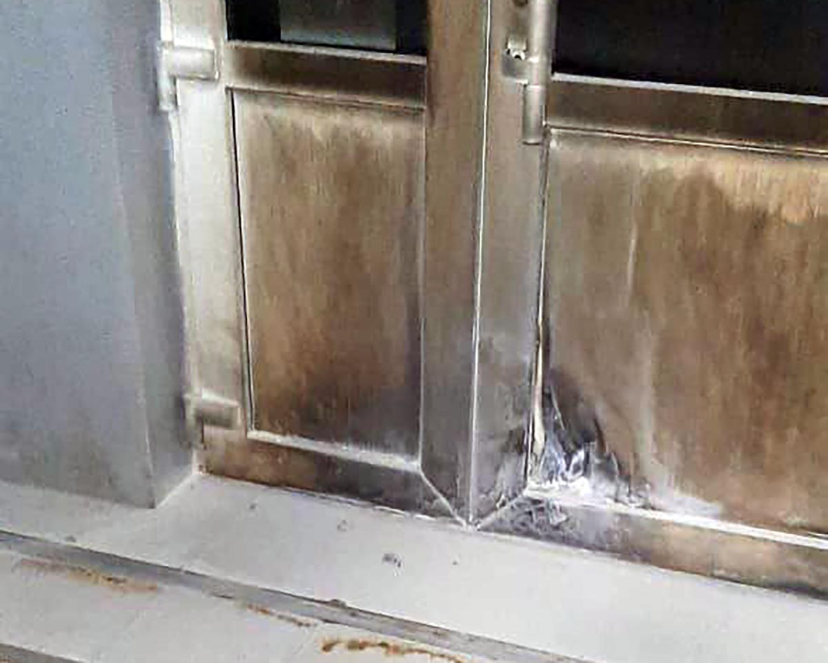 Наряд реагування поліції охорони негайно прибув на місце події. Під час огляду об'єкта правоохоронці виявили розбитий склопакет вікна та займання вхідних металопластикових дверей. Вогонь вдалося швидко загасити.