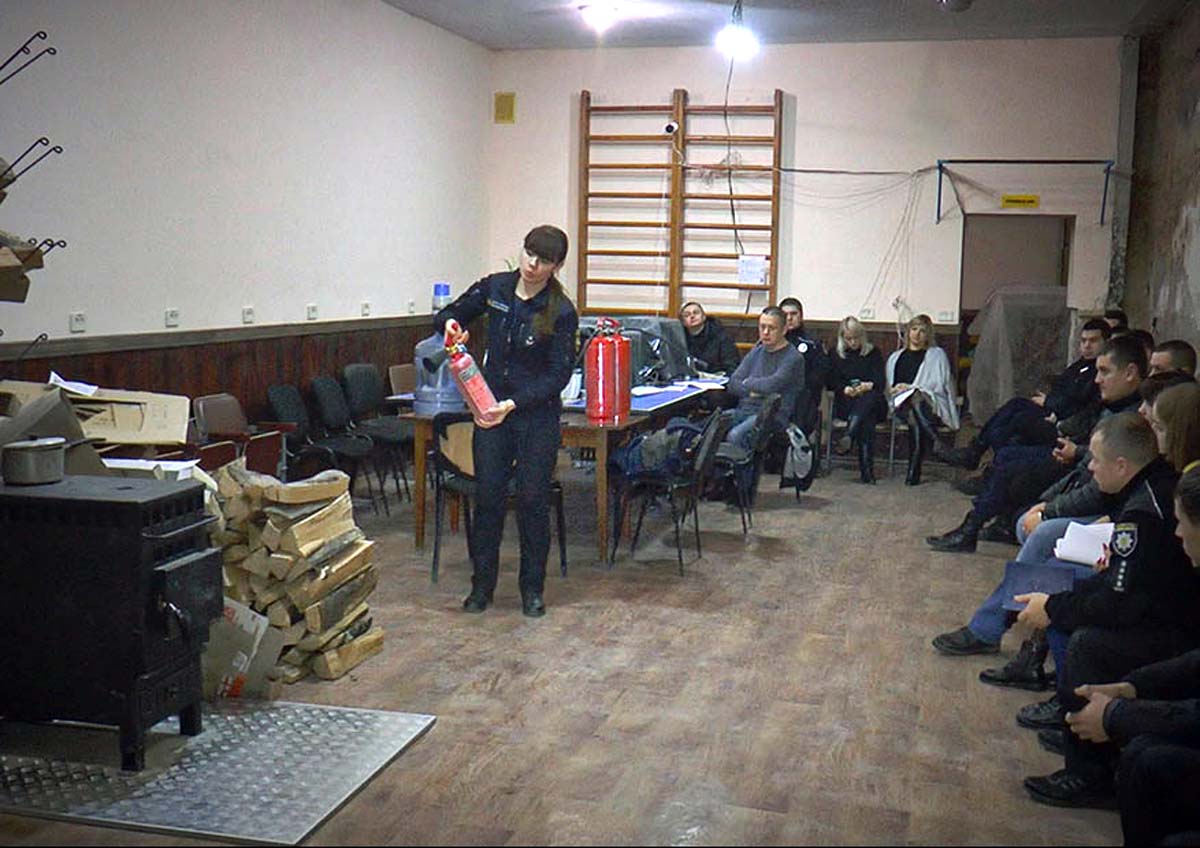 Правоохоронцям нагадали правила пожежної безпеки в приміщеннях будівель та пояснили алгоритм дій при виявленні пожежі.