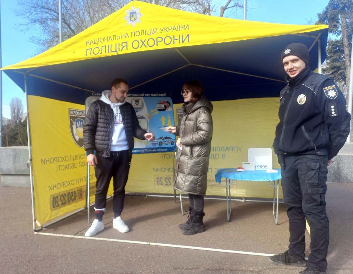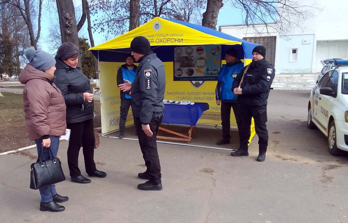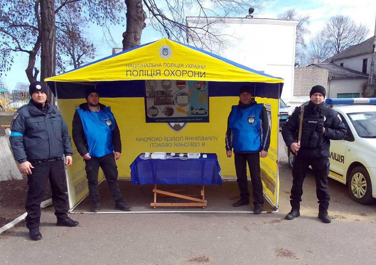 Днями в містечках Одещини можна було зустріти нашу фірмову палатку із представниками поліції охорони, які ознайомлювали населення із перевагами охорони майна. Багато людей з цікавістю підходили та розпитували деталі, що свідчить про свідоме бажання бути постійно в безпеці.