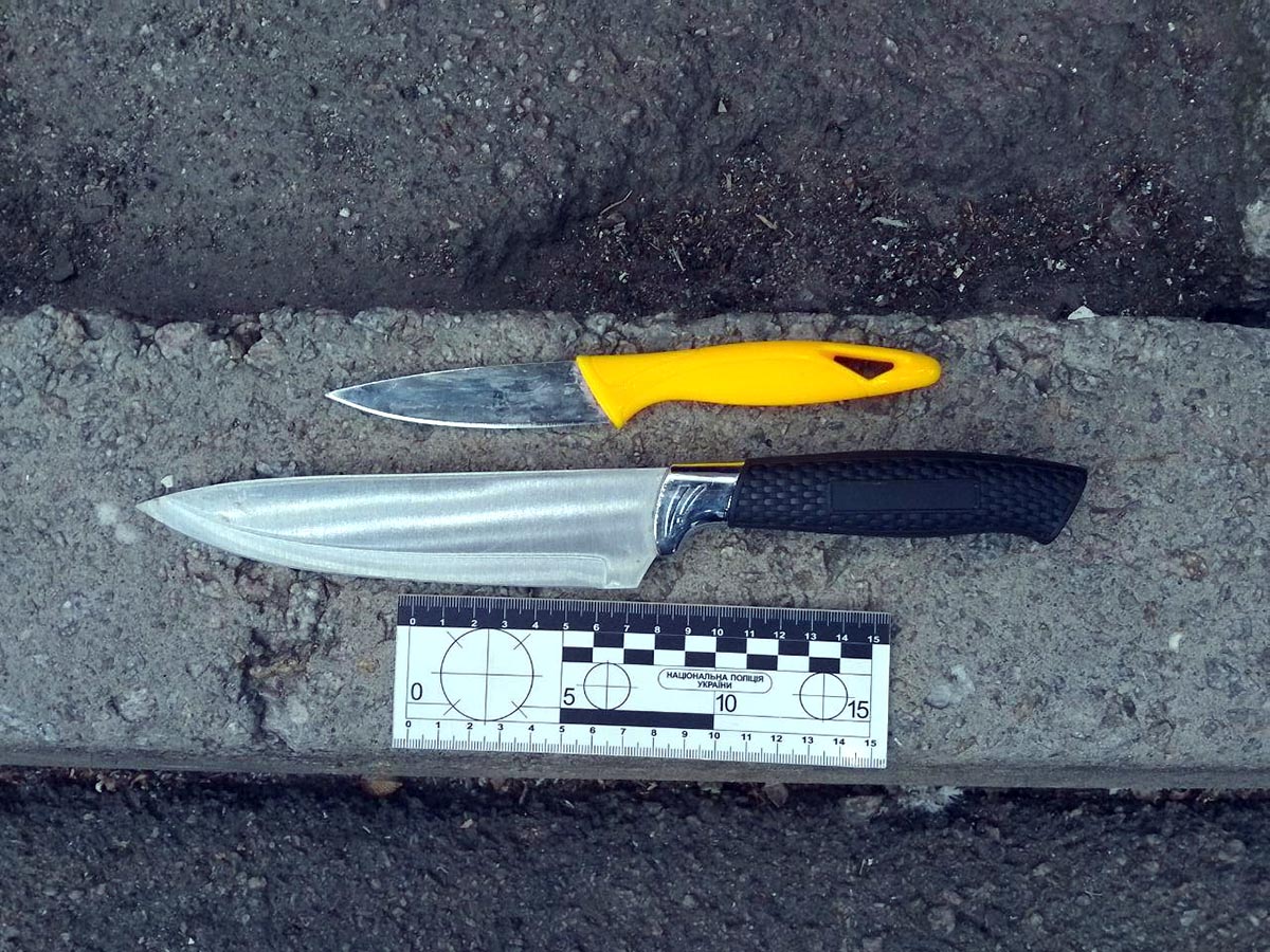 Прибувши на місце спрацювання тривожної кнопки, правоохоронці вилучили у мешканця Запоріжжя кухонні ножі, якими він погрожував відвідувачам кафе.