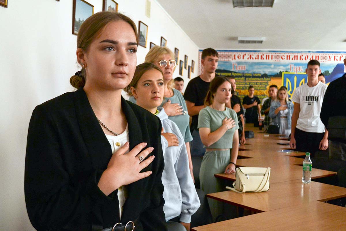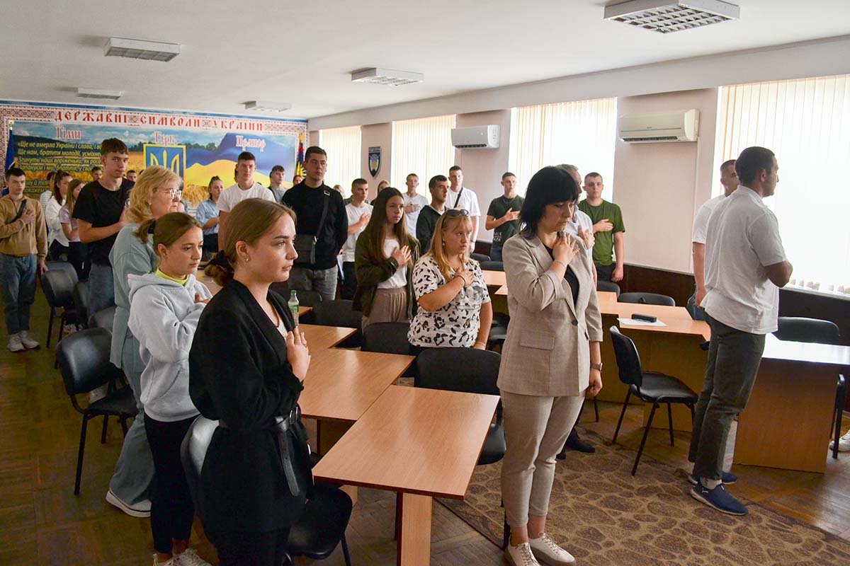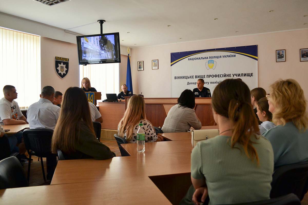 Колектив училища радо зустрів першокурсників. З вітальним словом до вступників звернувся тимчасово виконуючий обов’язки начальника училища підполковник поліції Ігор Кліманов, який розпочав свою промову хвилиною мовчання за загиблими у російсько-українській війні.