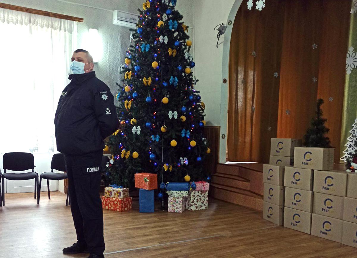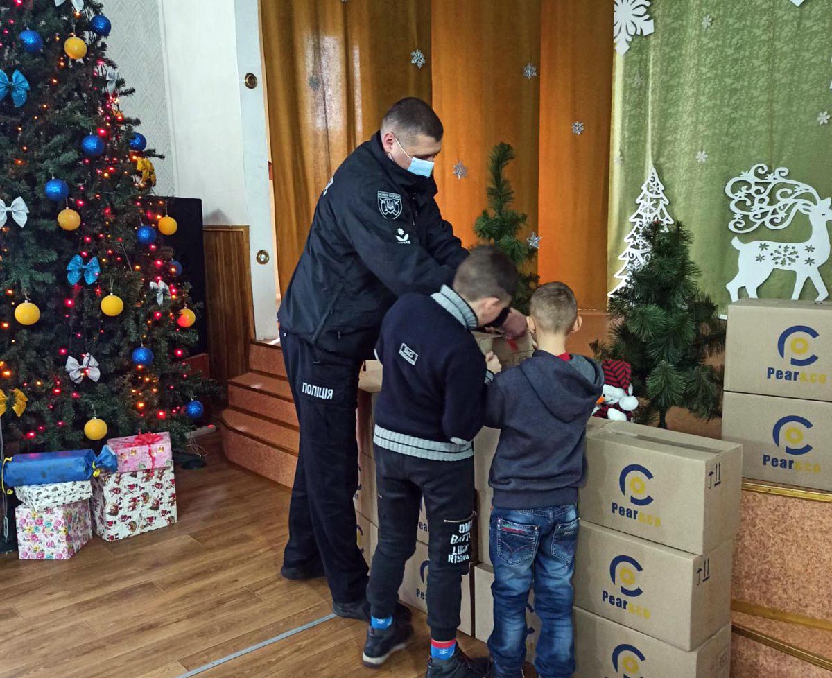 Поліцейські вурчили дітворі солодощі з фруктами, а також подаували свої обійми і побажання. Сяючі і щасливі очі вихованців говорили без слів.