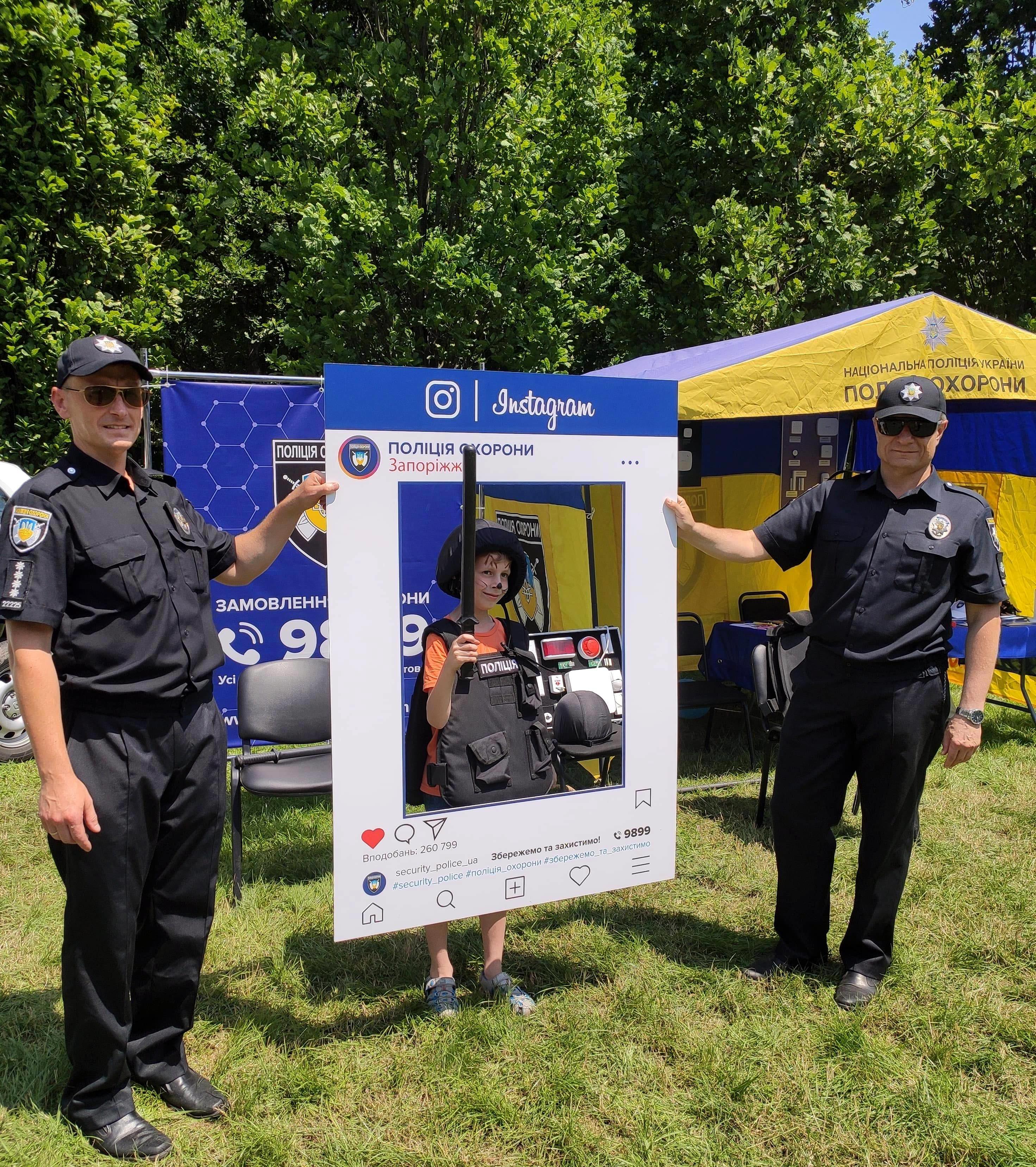 Поліцейські охорони охоче допомагали дітлахам розібратися з особливостями передачі інформації через гучномовець службового автомобіля та за допомогою переносної радіостанції. Багато охочих вдягали амуніцію поліцейського, отримуючи призи за швидкість. Малеча із цікавістю шукала металеві предмети за допомогою справжнього поліцейського металошукача. Діти та дорослі із задоволенням отримували подарунки від правоохоронців.