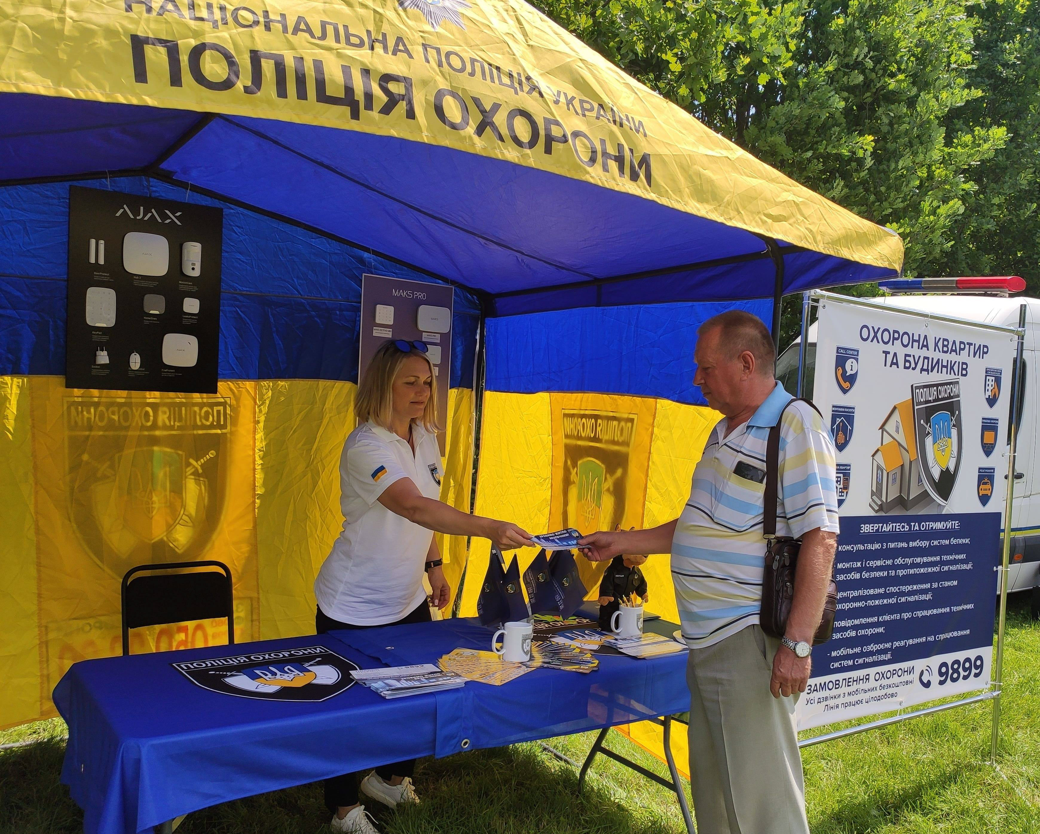 У наметі поліції охорони фахівці демонстрували апаратуру охоронного призначення та розповідали про особливості її роботи. Правоохоронці знайомили містян зі своєю професією та із задоволенням відповідали на всі питання щодо служби в поліції.