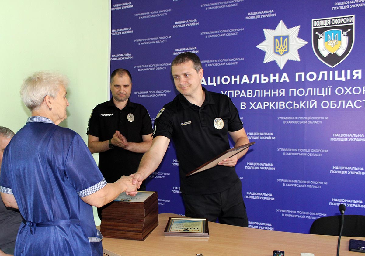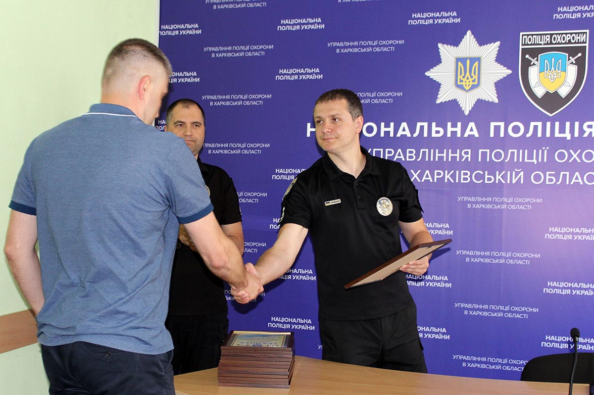 З нагоди відзначення Дня Конституції України начальник Управління поліції охорони в Харківській області Артем Фоменко вручив співробітникам грамоти.