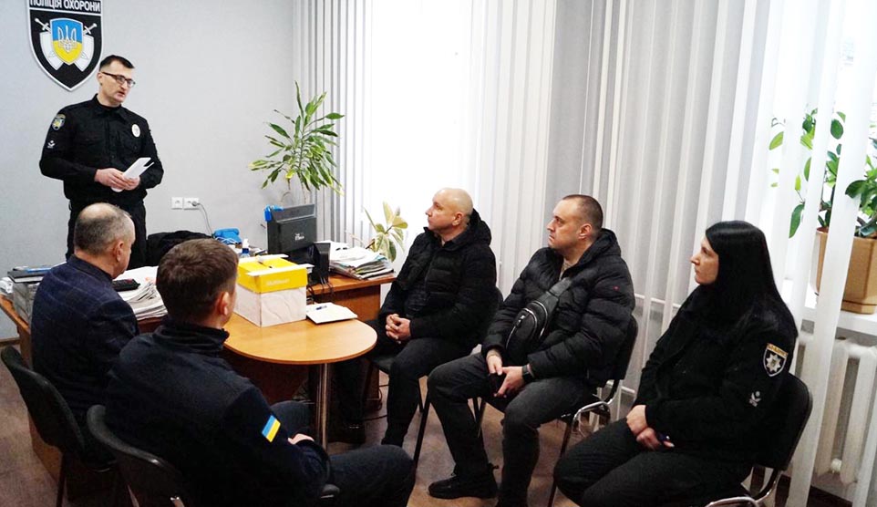 Для оперативного реагування у разі виникнення пожежі поліцейські охорони постійно відвідують інформаційні заняття, які їм проводять інспектори Головного Управління ДСНС України у Житомирській області. 11...