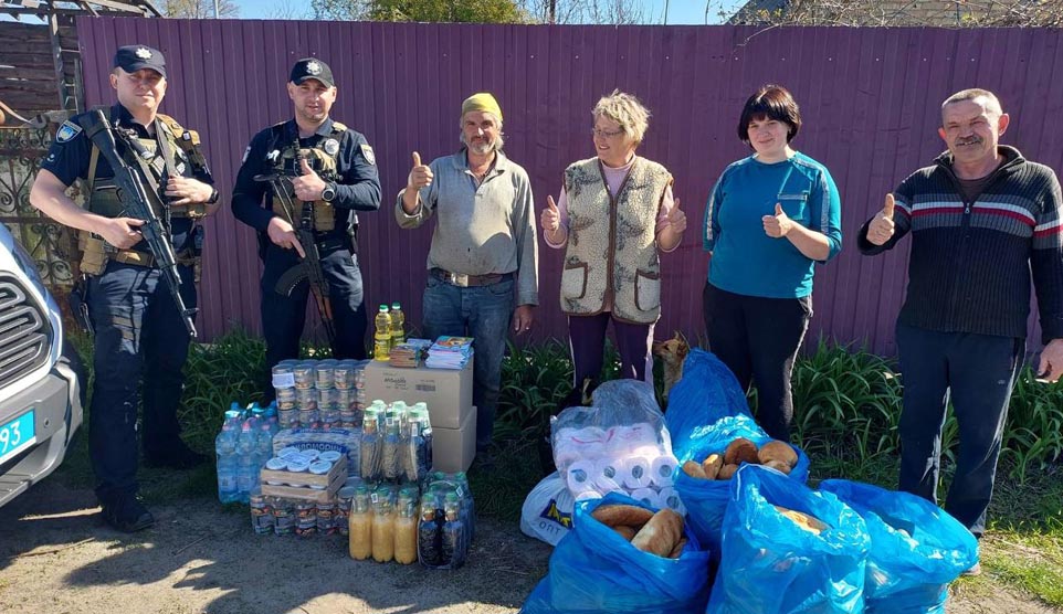 Працівники Управління поліції охорони з фізичної безпеки в місті Києві разом з волонтерами доставляють громадянам гуманітарну допомогу на Київщині: питна вода, хліб, харчові продукти, предмети першої...