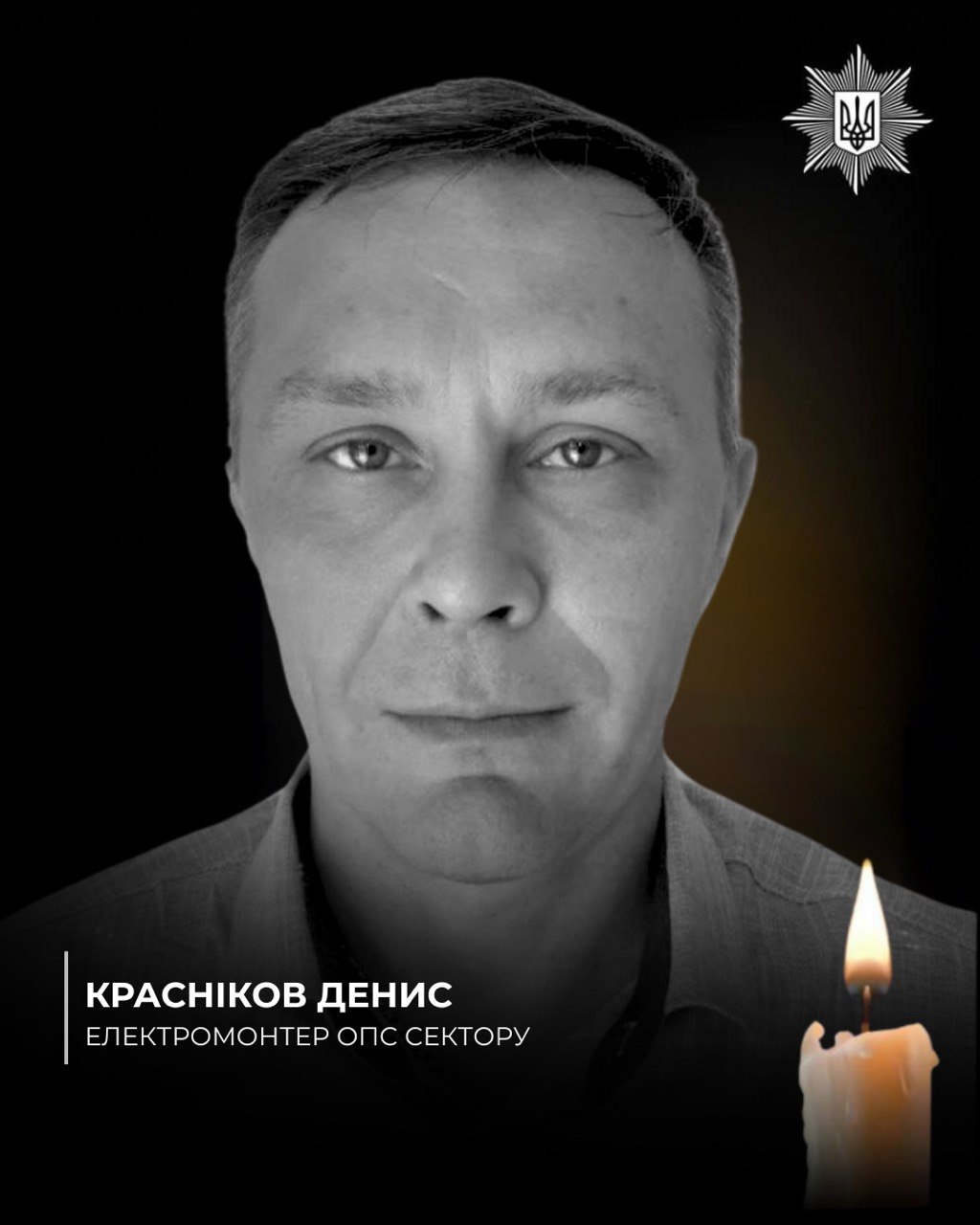 Сьогодні, під час виконання службових обов’язків, загинув працівник поліції охорони — електромонтер охоронно-пожежної сигналізації Красніков Денис.