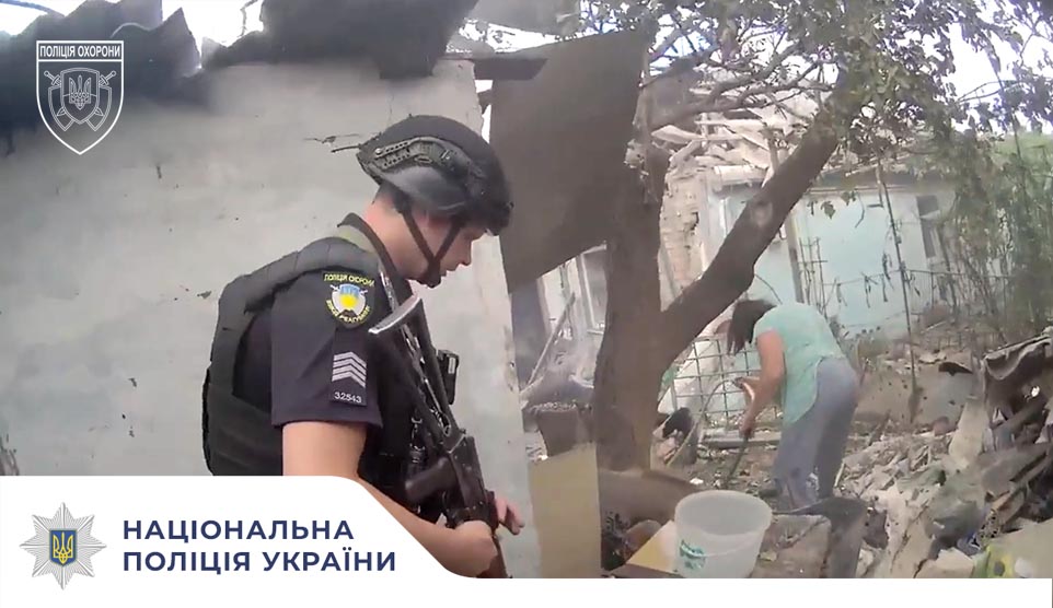 Після ворожого обстрілу були зруйновані приватні житлові будинки. Наряд реагування поліції охорони оперативно прибув на місце події. Правоохоронці надали допомогу місцевим мешканцям: допомагали гасити пожежу...
