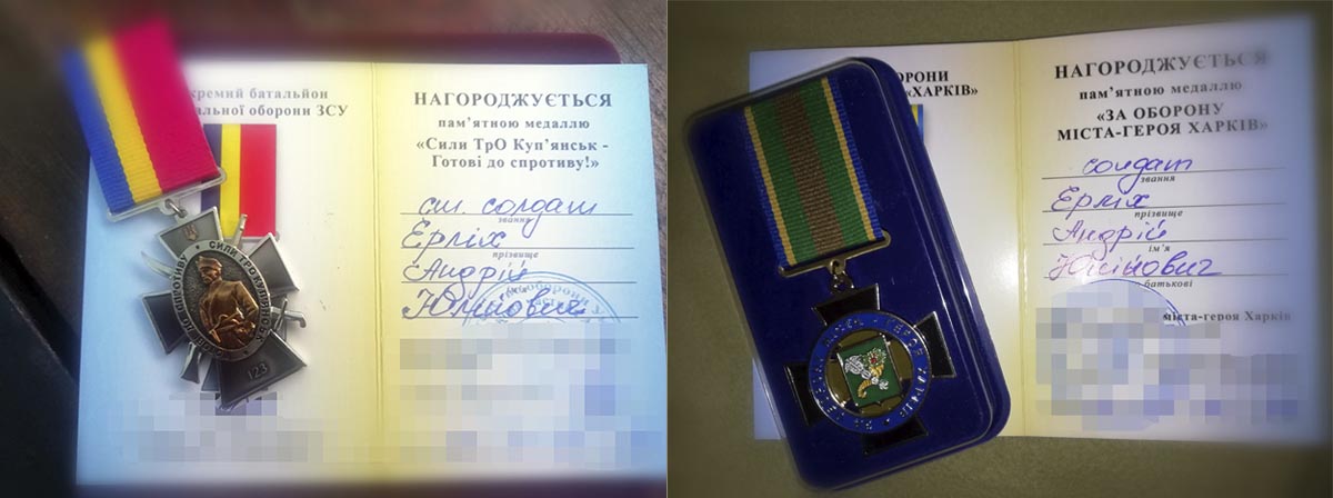 Андрій Ерліх отримав кілька відзнак, однак вважає це здобутком не стільки власним, скільки усього окремого Куп’янського батальйону ТрО. Всупереч втратам, втомі, пережитим жахіттям ці хлопці стоять залізобетонною стіною між Україною та мороком, даруючи нам можливість жити далі.