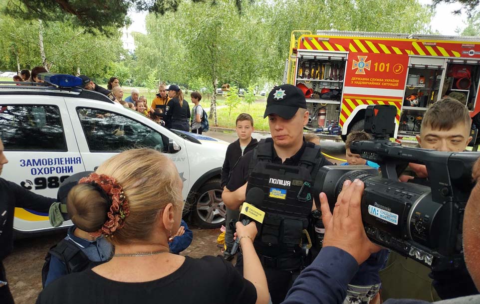 На території одного з закладів міста запрошені організації влаштували для дітей цікавий пізнавальний захід. Пожежники наочно продемонстрували свою специфіку роботи зі справжнім гасінням пожежі, а чотирилапий напарник на прізвисько Альфа відшукувала заздалегіть сховані речі дітей. Поліцейські різних підрозділів ознайомили гостей з особливостями своєї служби, а медики у свою чергу доповнили захід презентаціями своєї діяльності.