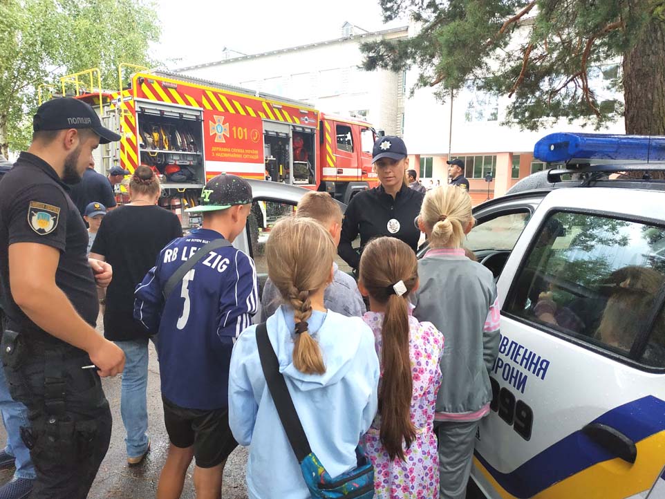 Запрошені служби разом з дітьми грали у спортивні ігри, співали патріотичні пісні, спілкувалися про правила поводження у разі виявлення вибухонебезпечних предметів та вчилися надавати медичну допомогу.