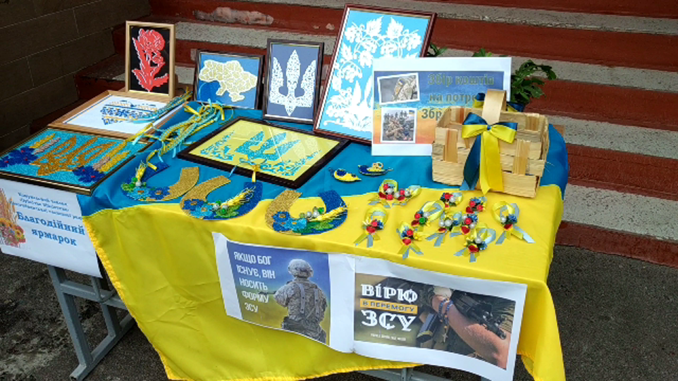 По завершенню заходу дітлахи запросили бажаючих приєднатися до благодійної ярмарки, де усі охочі могли придбати вироби створенні власноруч в патріотичному стилі, а зібрані кошти будуть передані на допомогу армії і нашим захисникам.