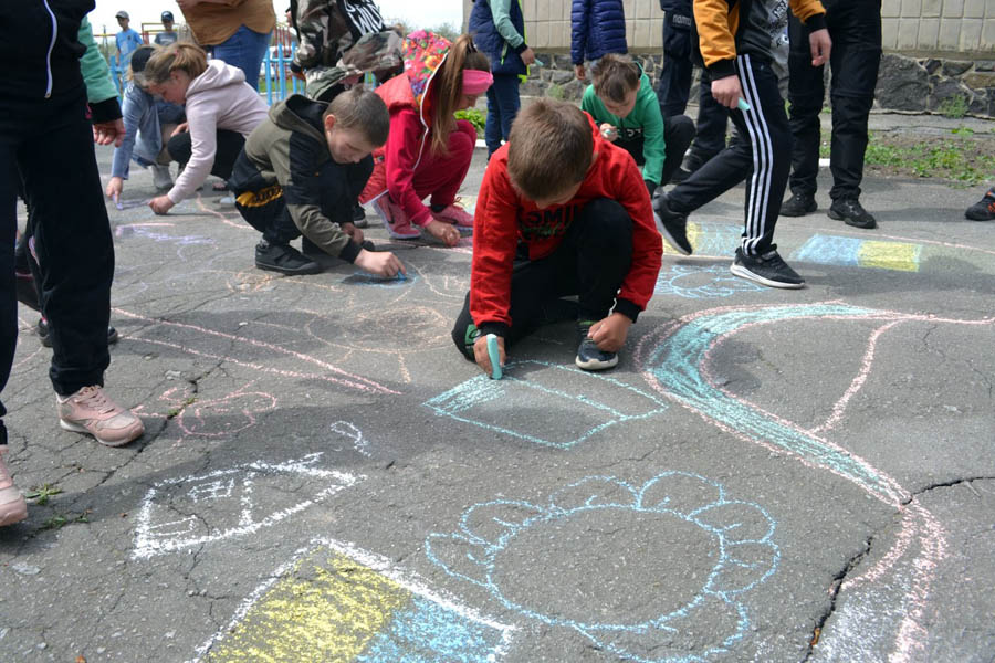 Діти старанно малювали свої мрії, домівки та сонечко на мирному небі.