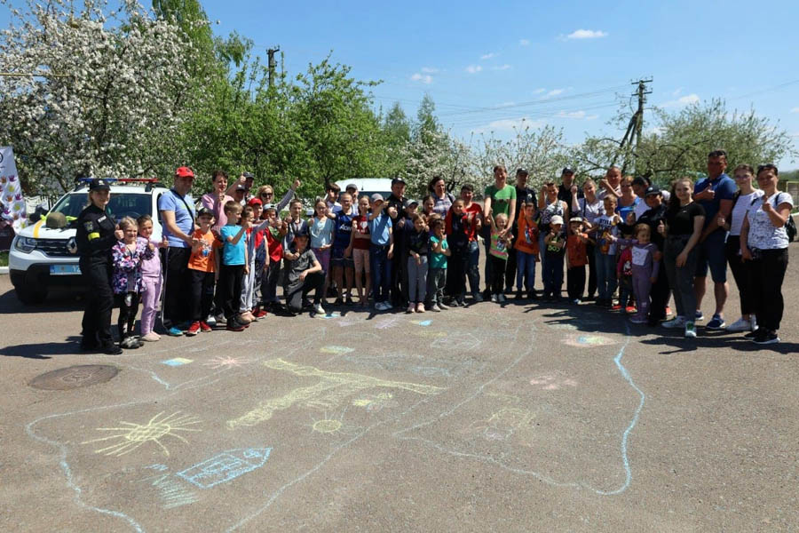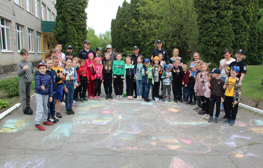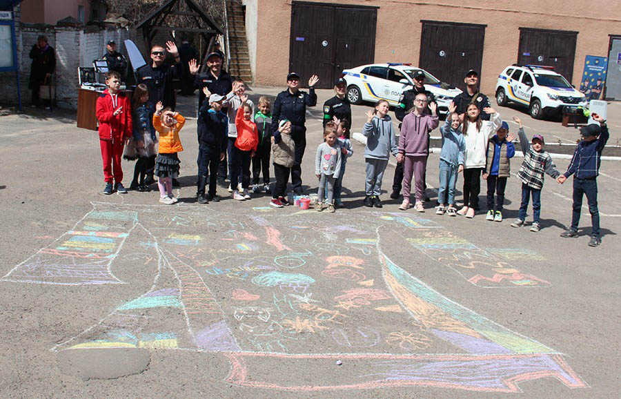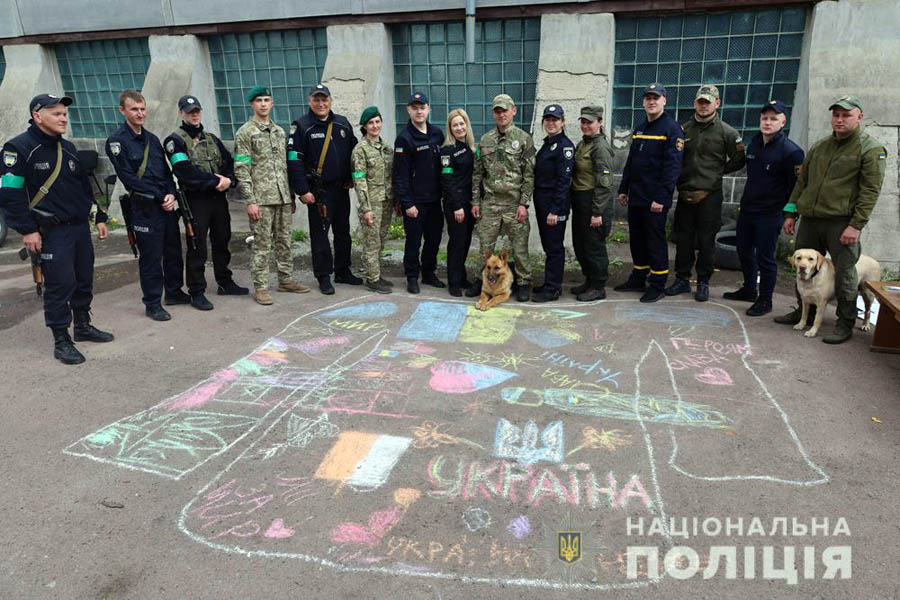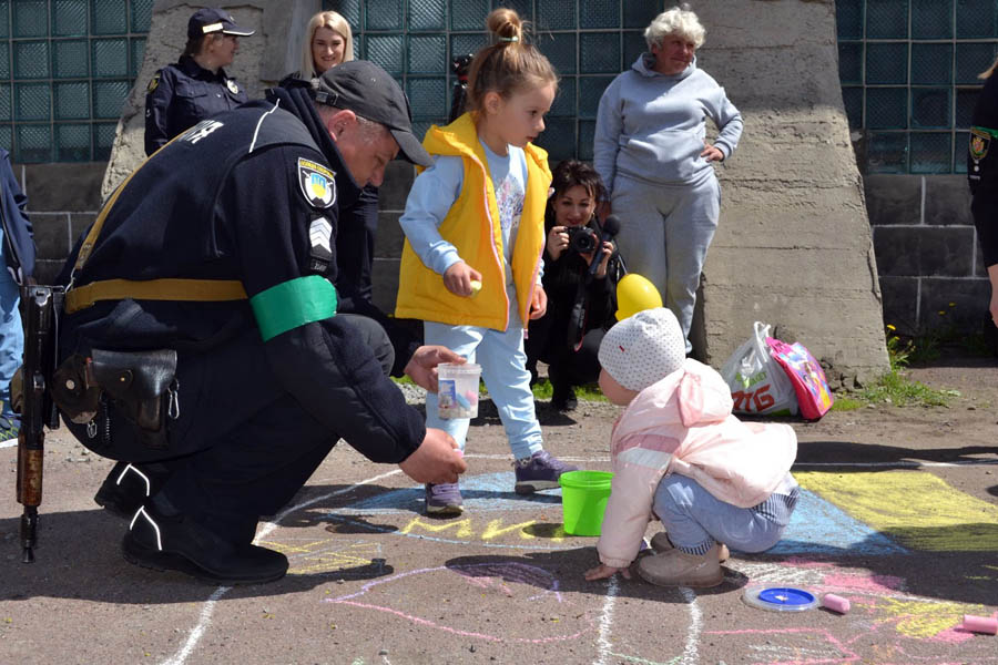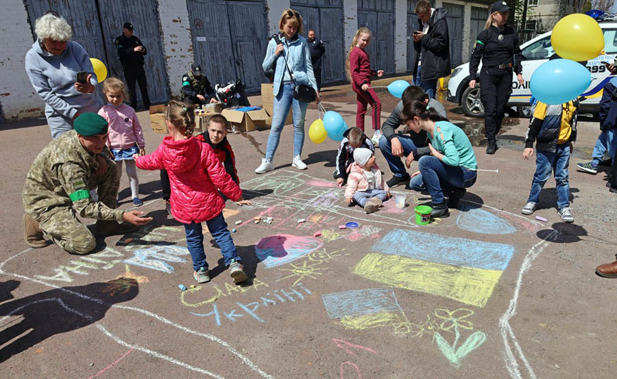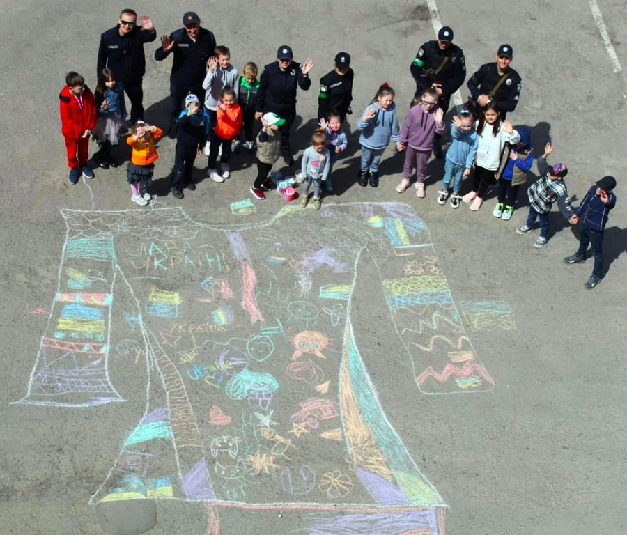 Напередодні Всесвітнього дня вишиванки працівники поліції охорони, ювенальної превенції, кінологічної служби, рятувальники, нацгвардійці та прикордонники зустрілися з родинами, які із-за війни були вимушені покинути свої домівки, та разом створили на асфальті кольоровою крейдою вишиванку, зображення якої уособлює мирне і світле життя українців.