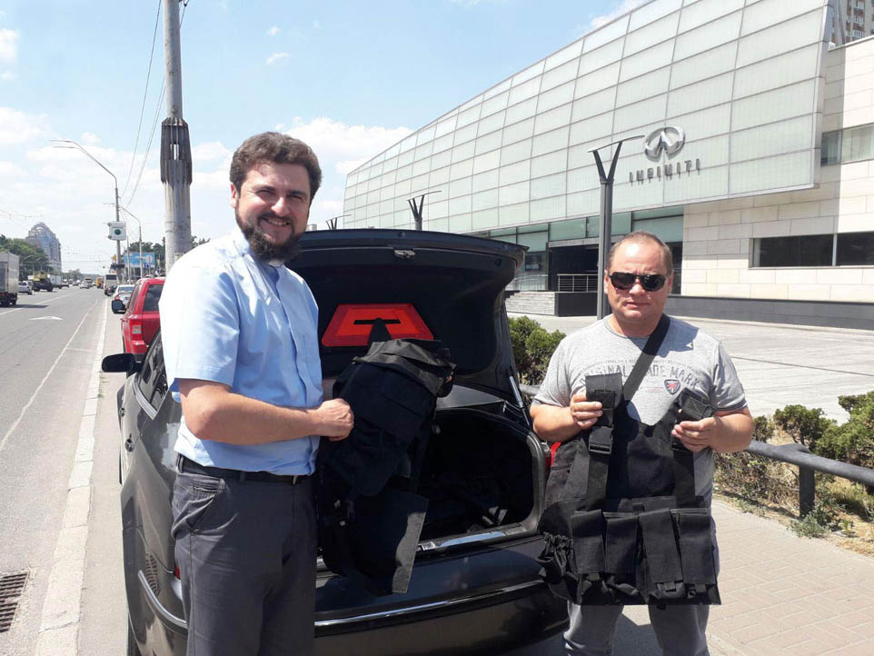 Від імені начальника Управління поліції охорони з фізичної безпеки в м. Києві полковника поліції Андрія МУЗИКИ та усього колективу поліції охорони висловлюємо щиру вдячність отцю Роману МАНУЛЯКУ та волонтеру Сергію ДРИГАНЮКУ за надану волонтерську допомогу, у вигляді розвантажувальних жилетів.