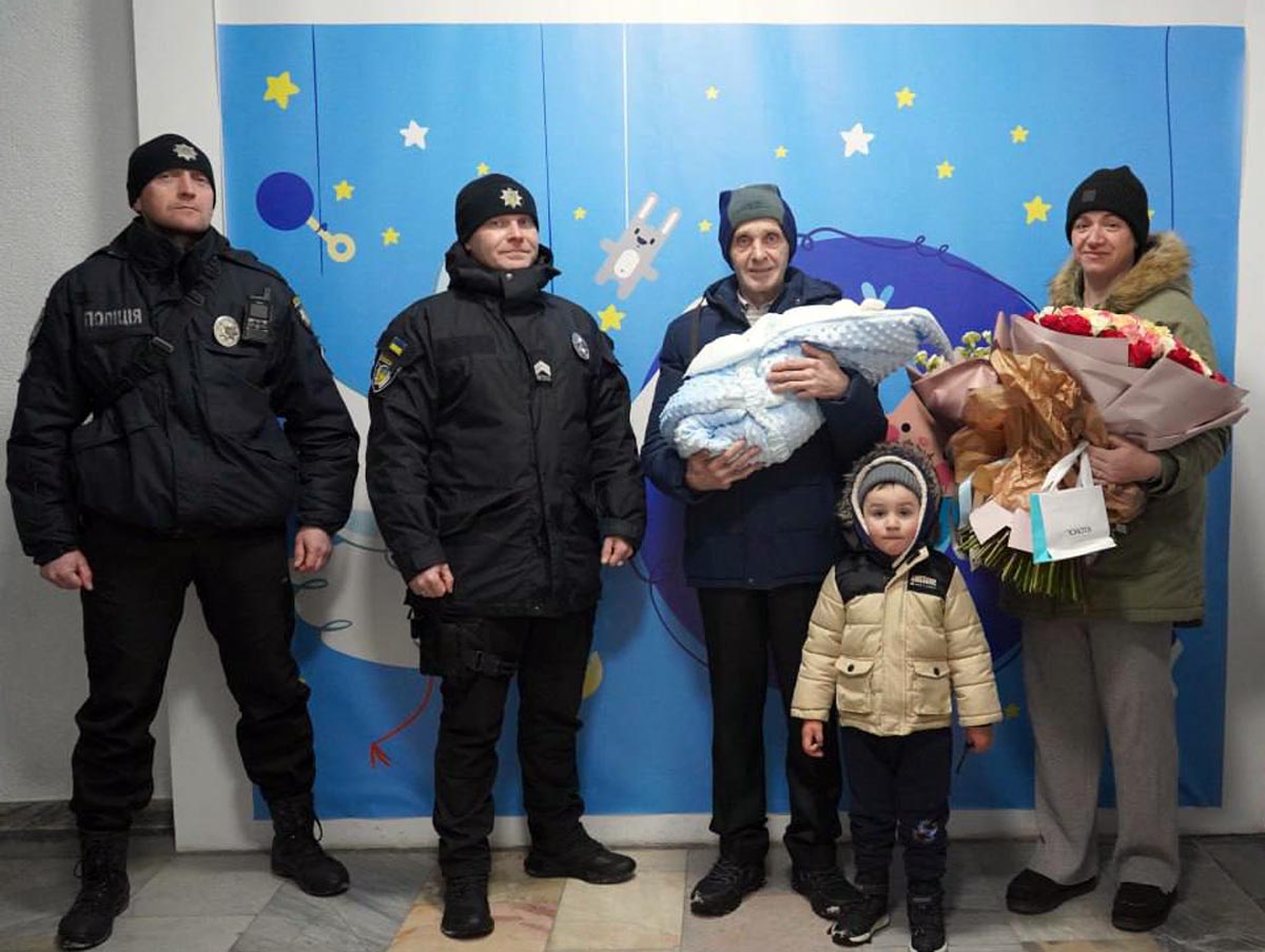 Сьогодні ця історія отримала своє щасливе продовження: поліцейські завітали на виписку з приємними подарунками, щоб привітати молоду маму Вікторію з народженням малюка.